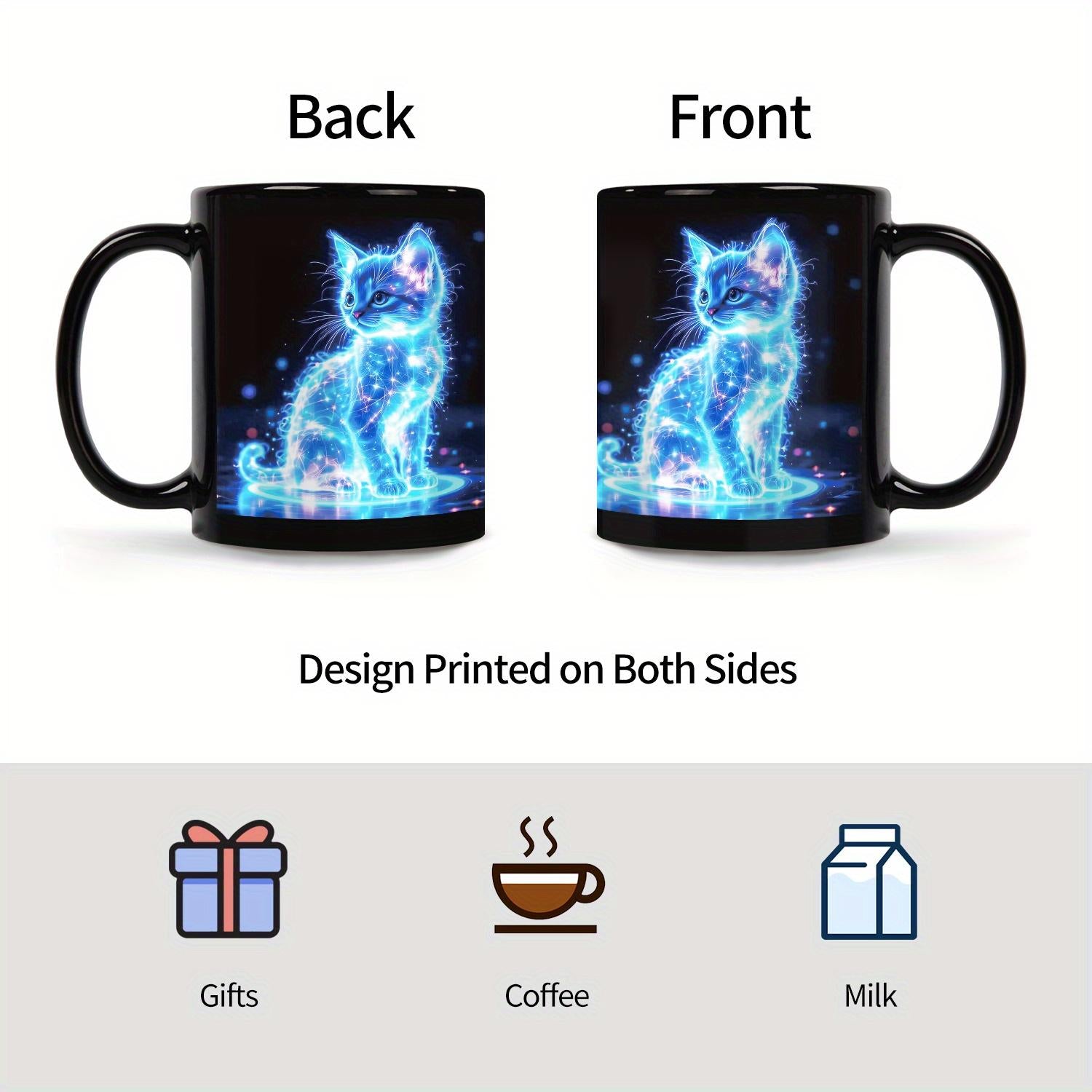 1pc Enchanting Blue Cat Ceramic Coffee Mug – Glowing Neon Design, Reusable Drinkware for All Seasons, Perfect Gift for Birthdays, Holidays, Christmas, New Year, Valentine'S Day, Coffee Bar Accessories