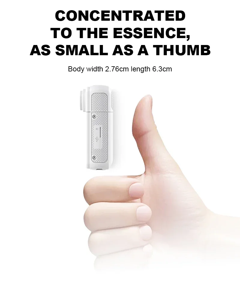 **Portable: The body weight is 35.6g, and the size is 65 * 28 * 25mm. The camera is small and portable, and you can hardly feel it when wearing it. You can record your life anytime and anywhere from the first-person perspective.