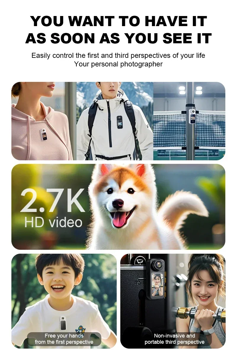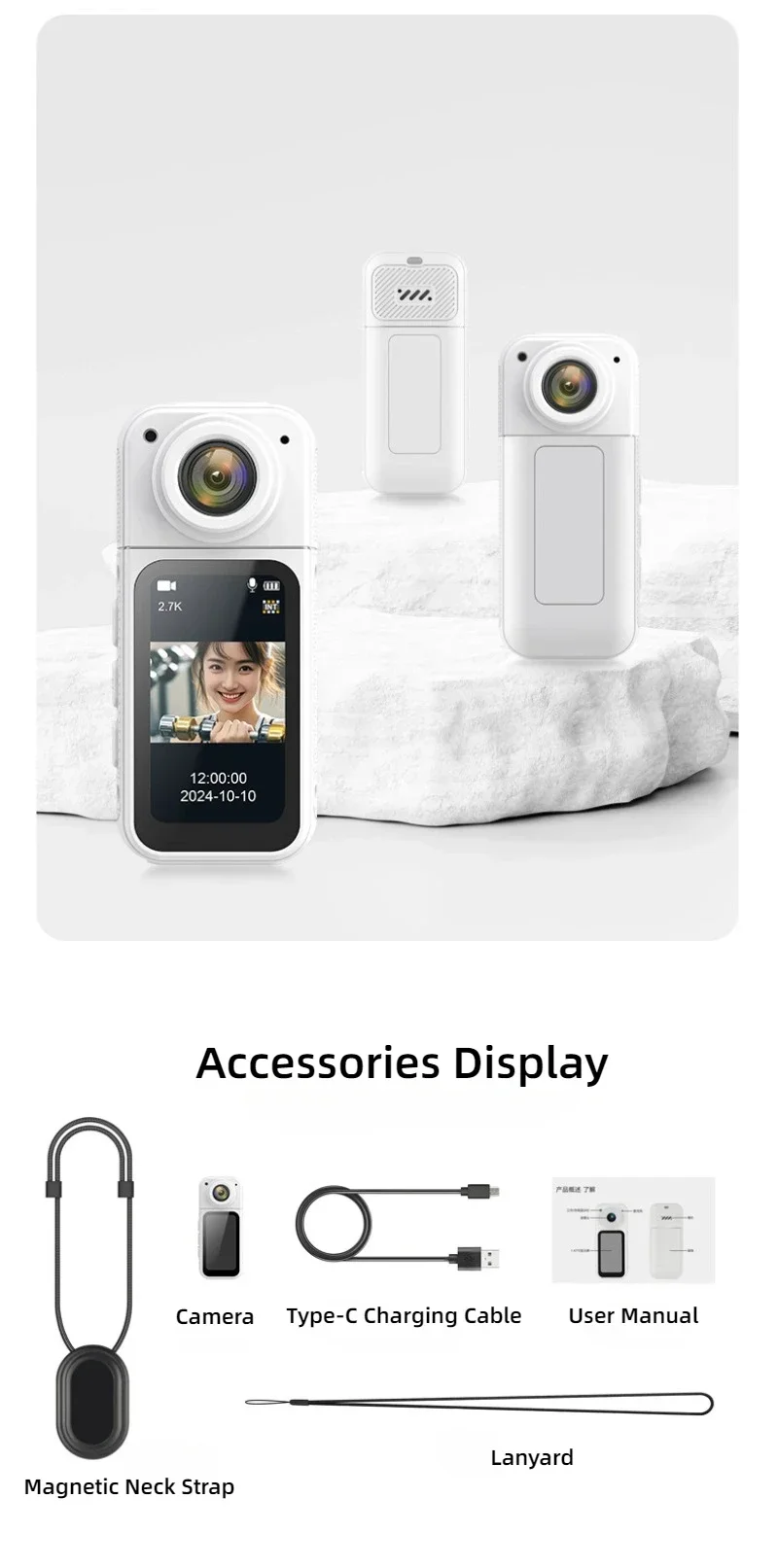 **High Definition display: 1.47" high definition display, 2.7K ultra-high definition video recording, clearly capture every angle, every wonderful, record a beautiful life.