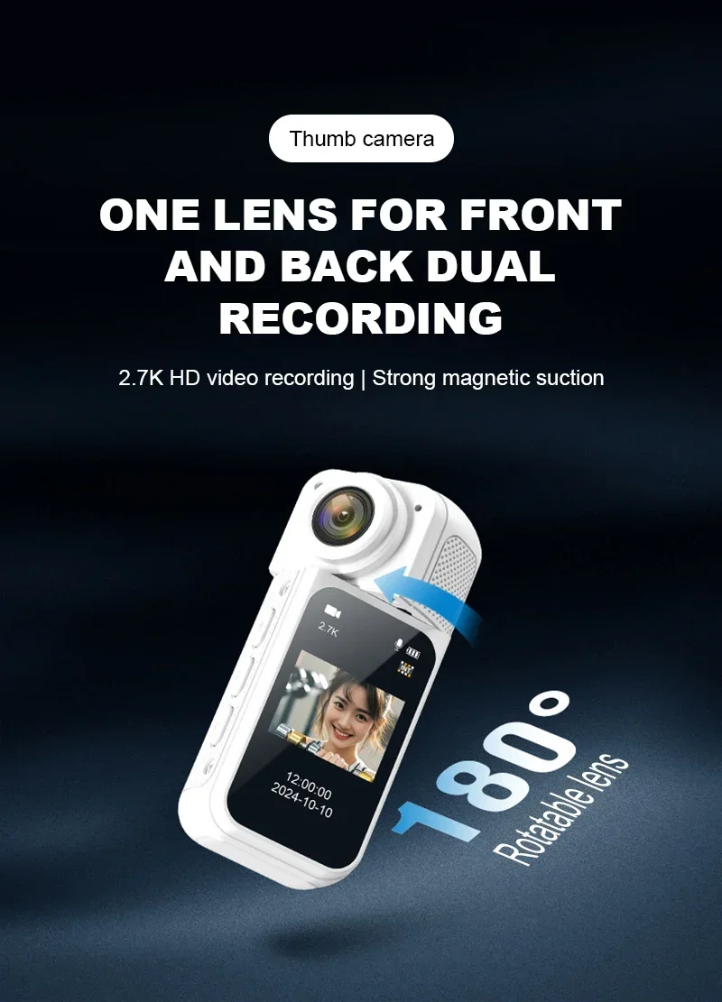 **Rotatable design: The lens can be rotated freely 180 degrees to find the perfect angle, achieve precise composition, and realize front and back dual recording.