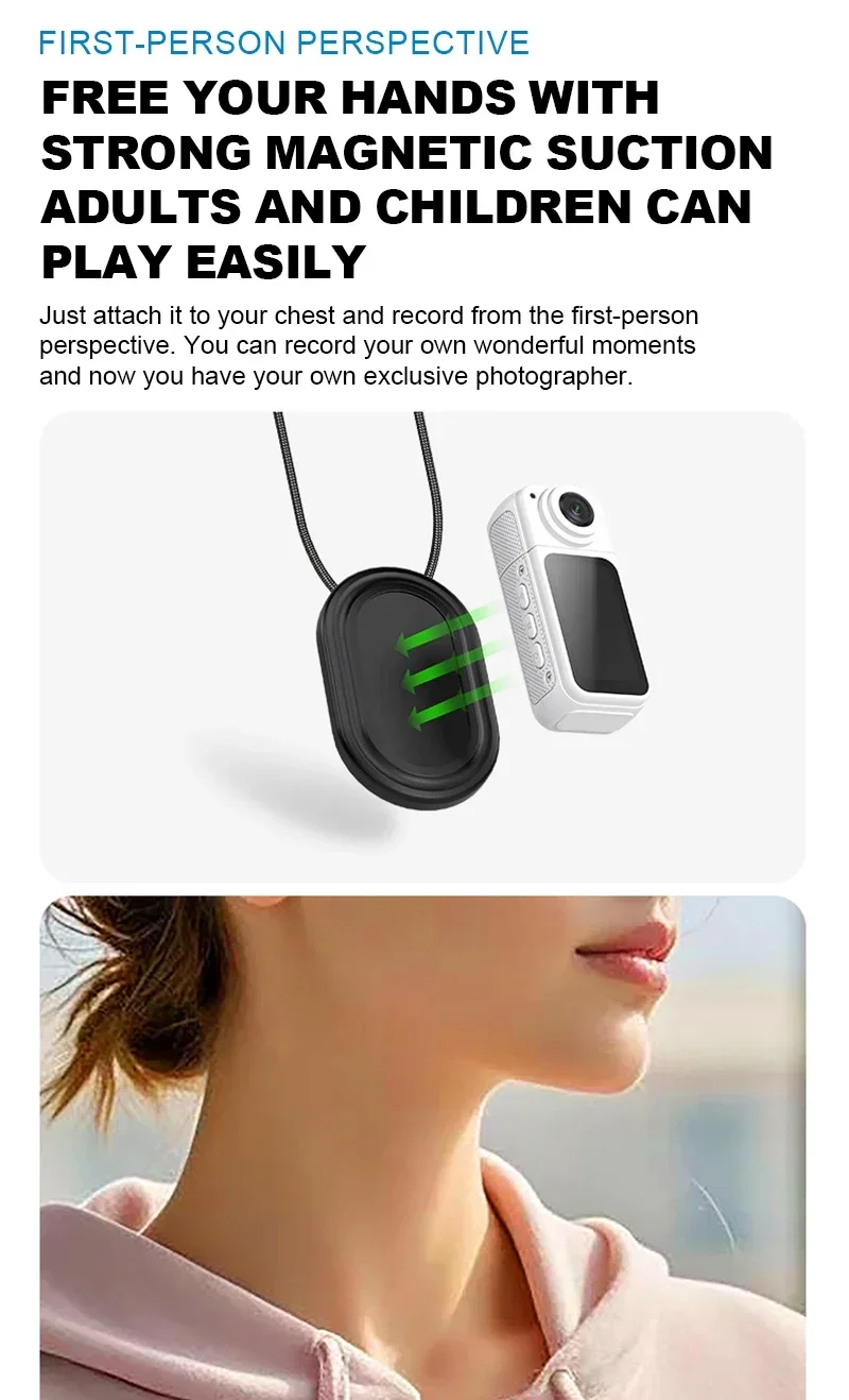 **Free your hands: Just easily attach it to your chest, free your hands, record your own wonderful moments from the first perspective, now you have your own exclusive photographer, adults and children can play easily.