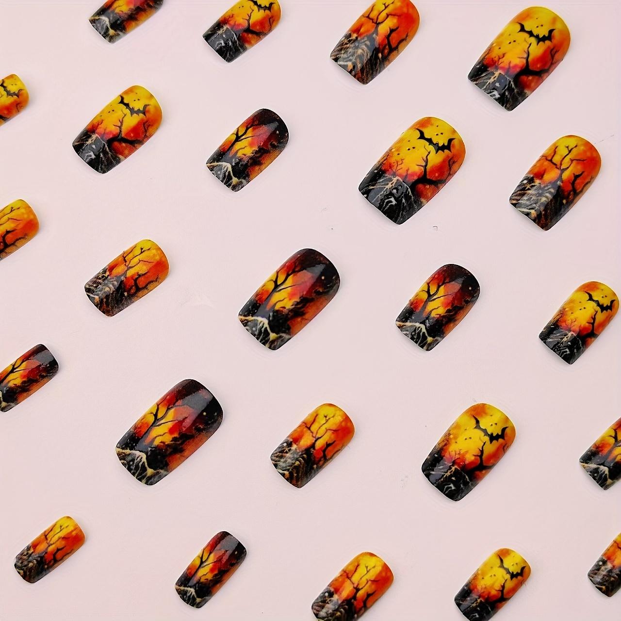 24pcs Halloween Press-On Nails - Black & Orange Fake Nails Halloween Nail Art