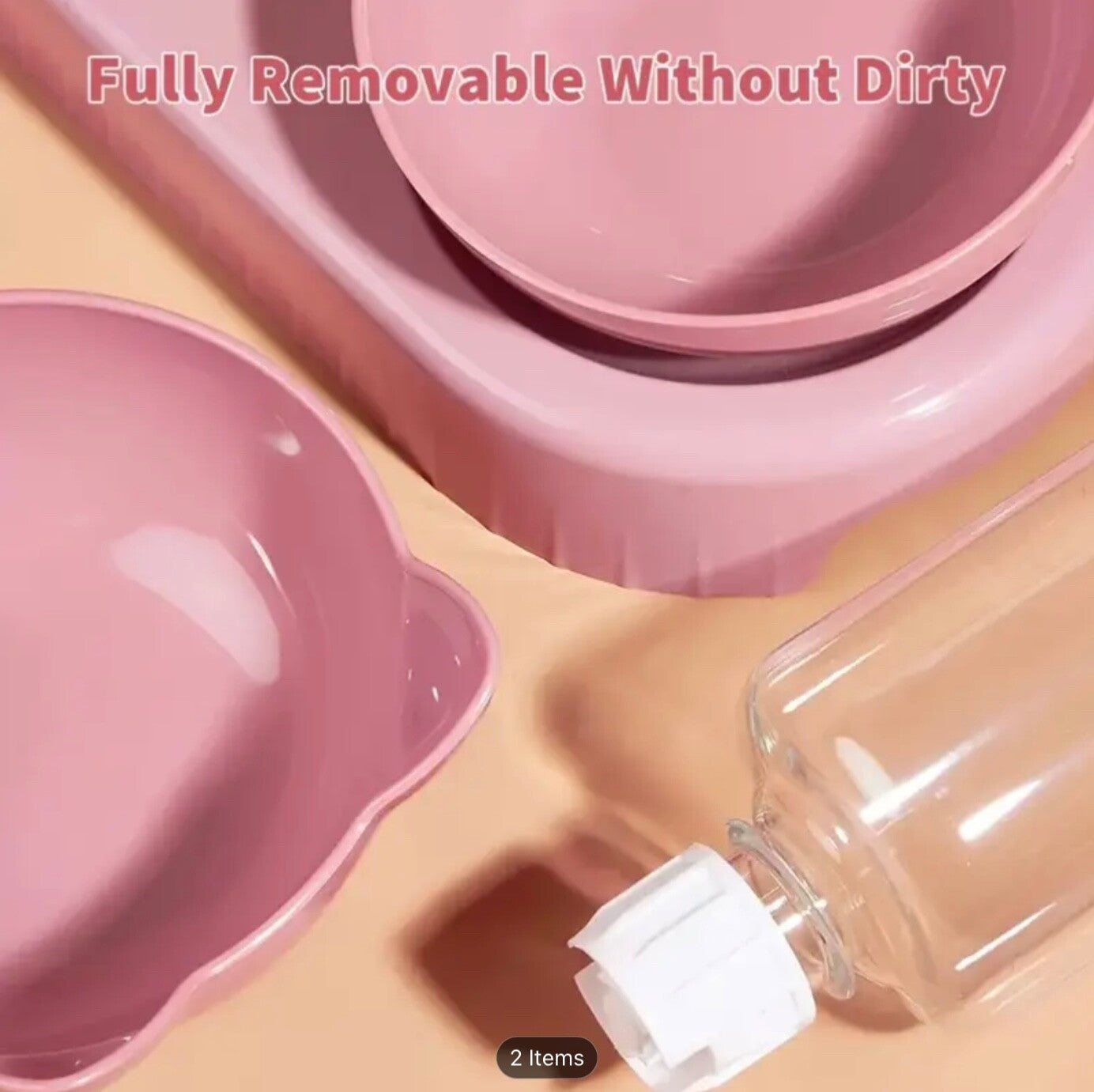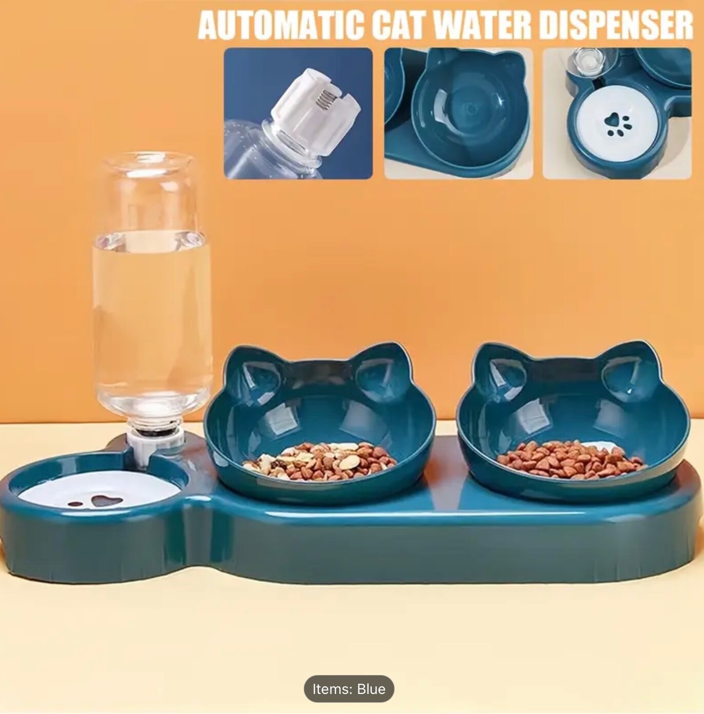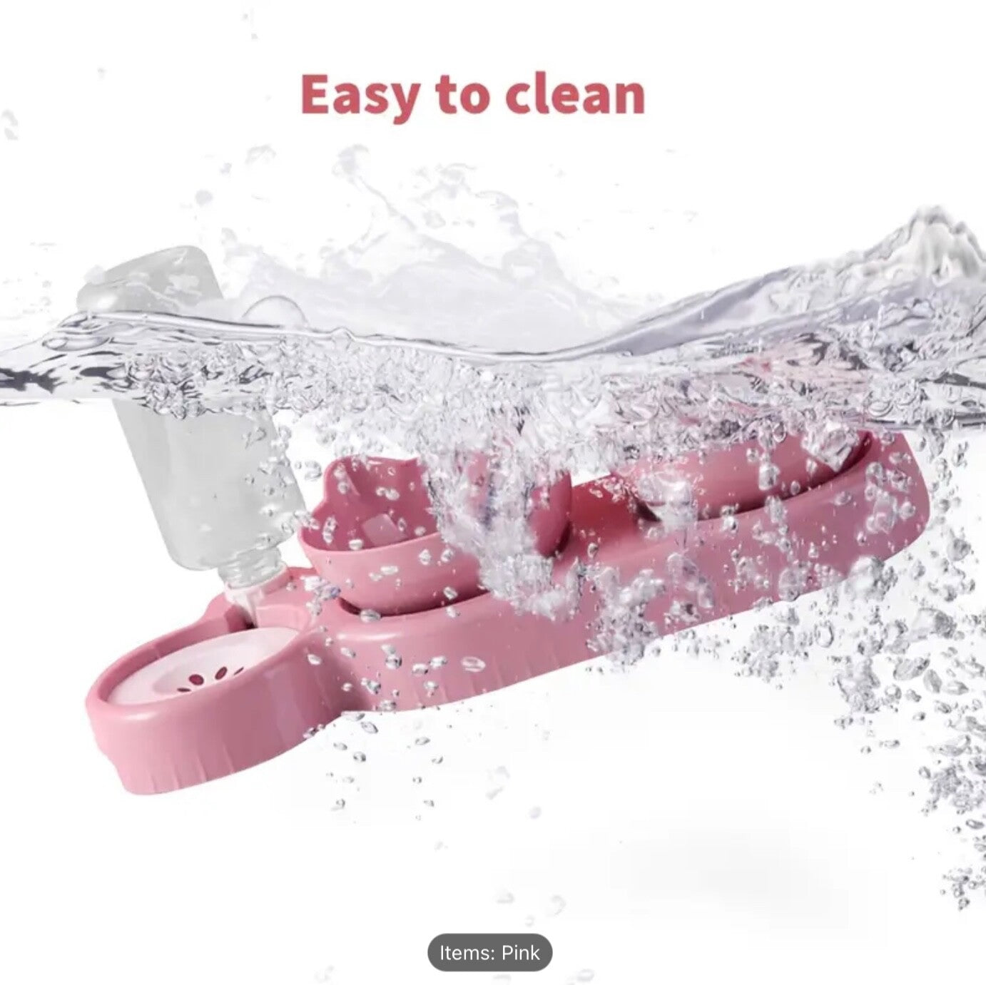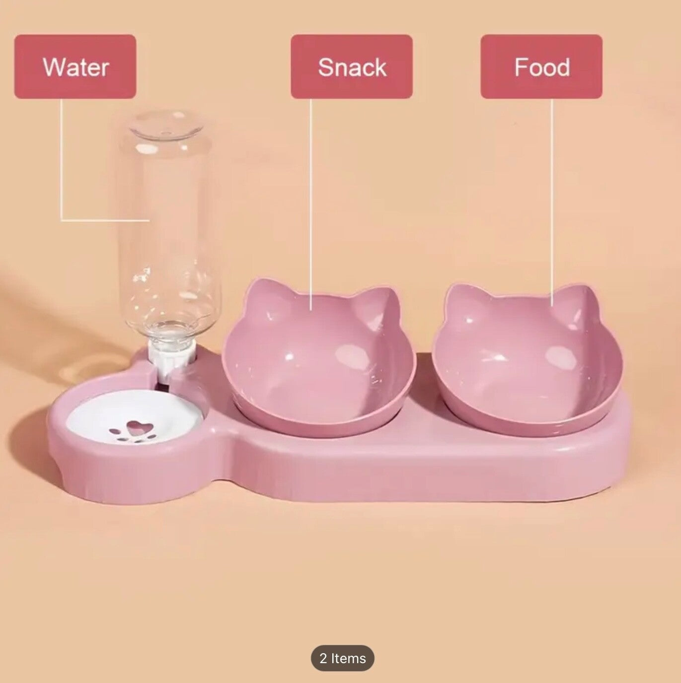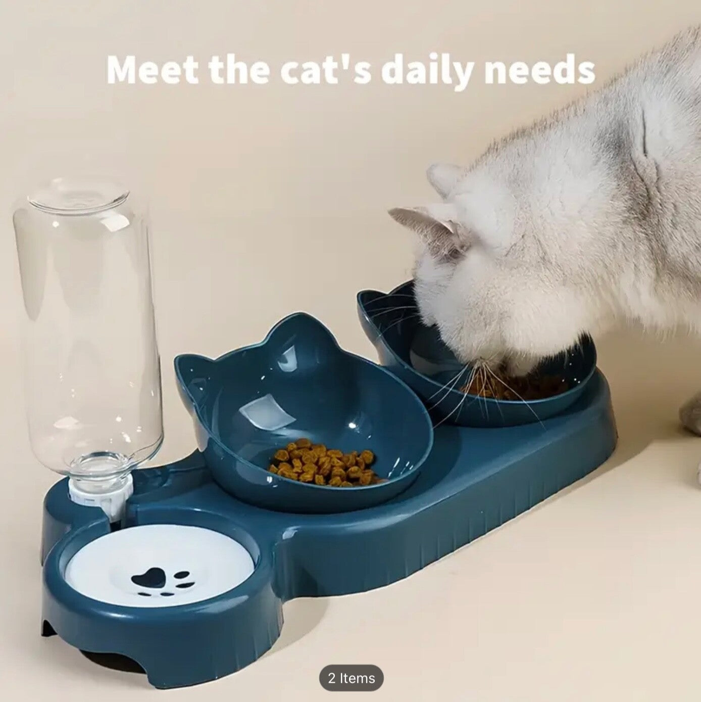 • Includes: 2 food bowls, 1 automatic water bottle, 1 raised stand