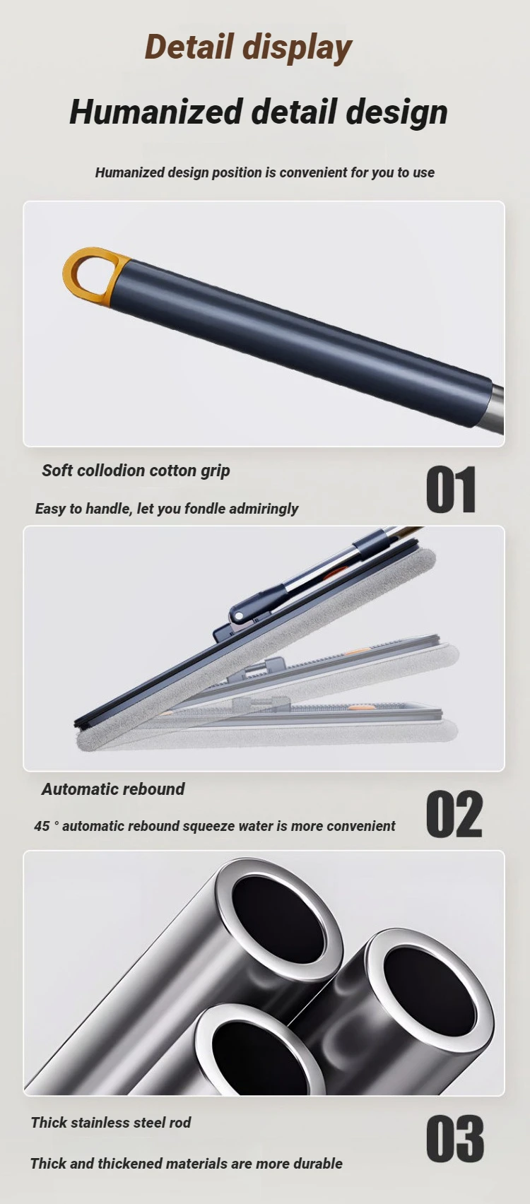 5.【360 rotating mop head + scraper design】, 40cm large panel mop, makes mopping efficiency several times faster, doing housework more beautiful, with built-in scraper, scraping while mopping, stains and foam are cleaned at one time, 360 rotating panel, easy to move around gaps and corners, cleaning the whole house more thoroughly,