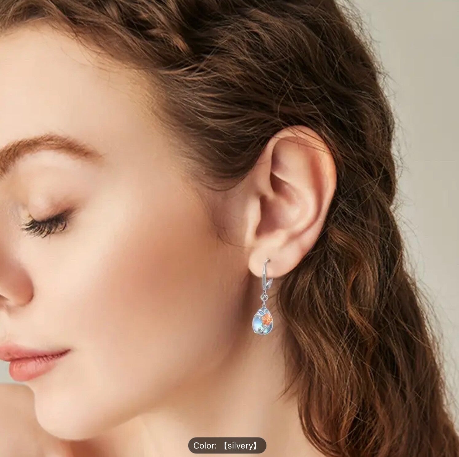 Elevate any ensemble with these exquisite 925 sterling silver drop earrings , featuring a genuine moonstone teardrop cabochon cradled by a delicate rose flower motif . Sparkling cubic zirconia-accented lever backs add just the right touch of shimmer and ensure a secure, comfortable fit. The iridescent glow of moonstone symbolizes intuition and new beginnings—making these earrings a meaningful gift for Mother's Day, Valentine's Day, anniversaries, or everyday wear.
