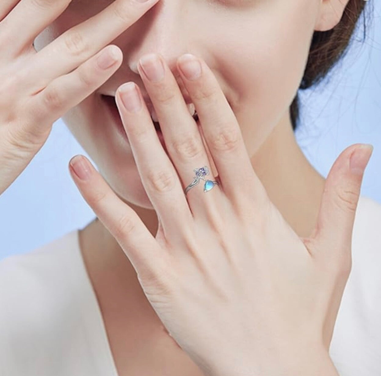 925 Sterling Silver Adjustable Flower Ring Moonstone Women Girls Gift Jewellery