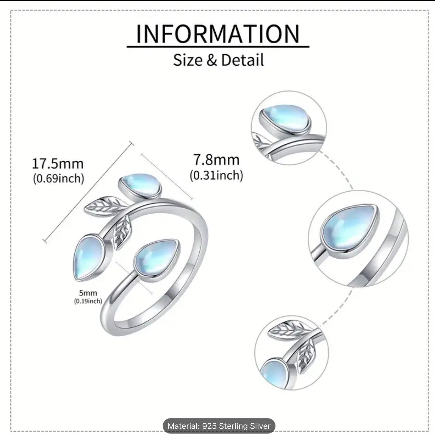 925 Sterling Silver Leaf Moonstone Ring Adjustable Gift Jewellery Women Girls