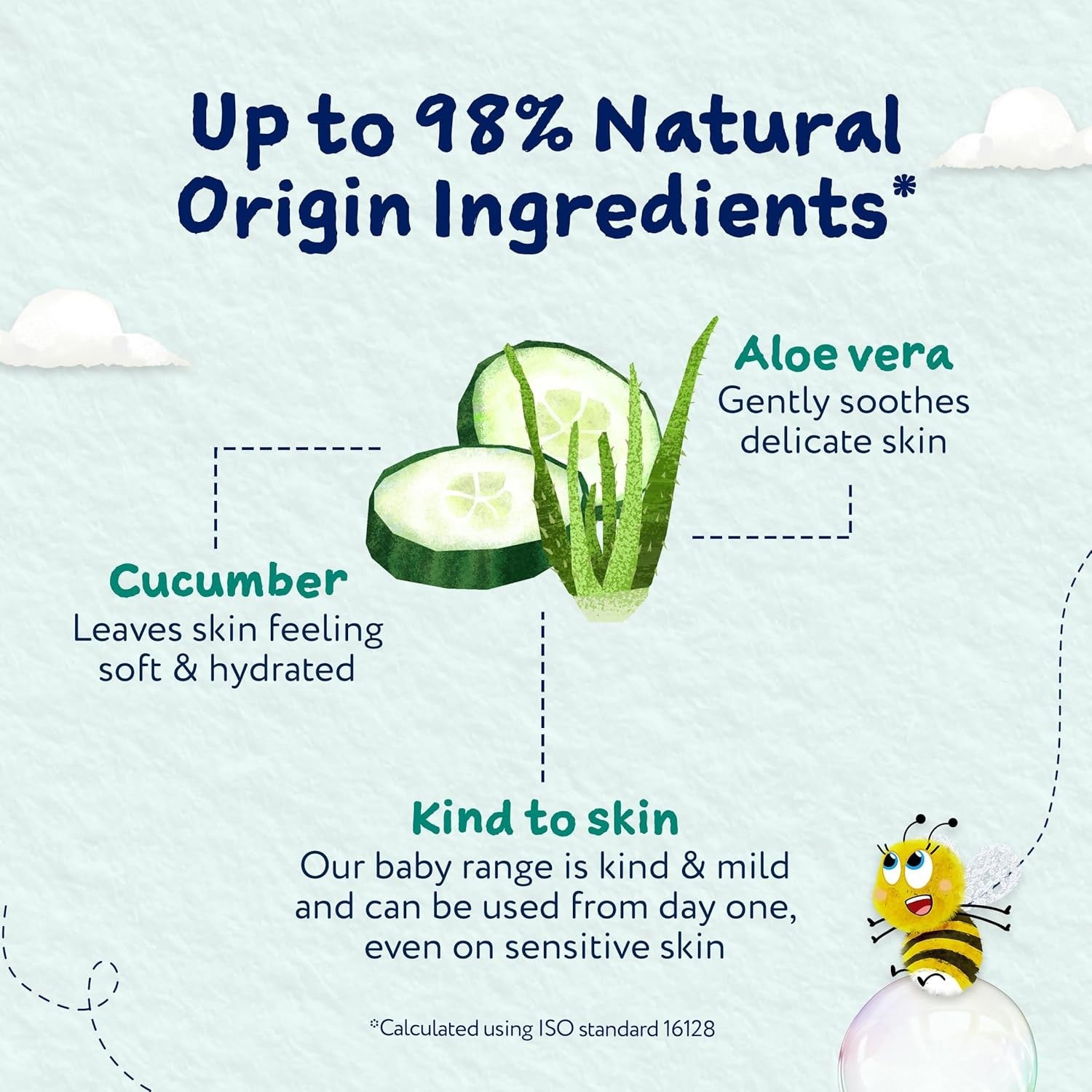 - Contains over 95% natural origin ingredients (calculated using ISO standard 16128) including naturally derived cleansers and skin-soothing aloe vera and cucumber.