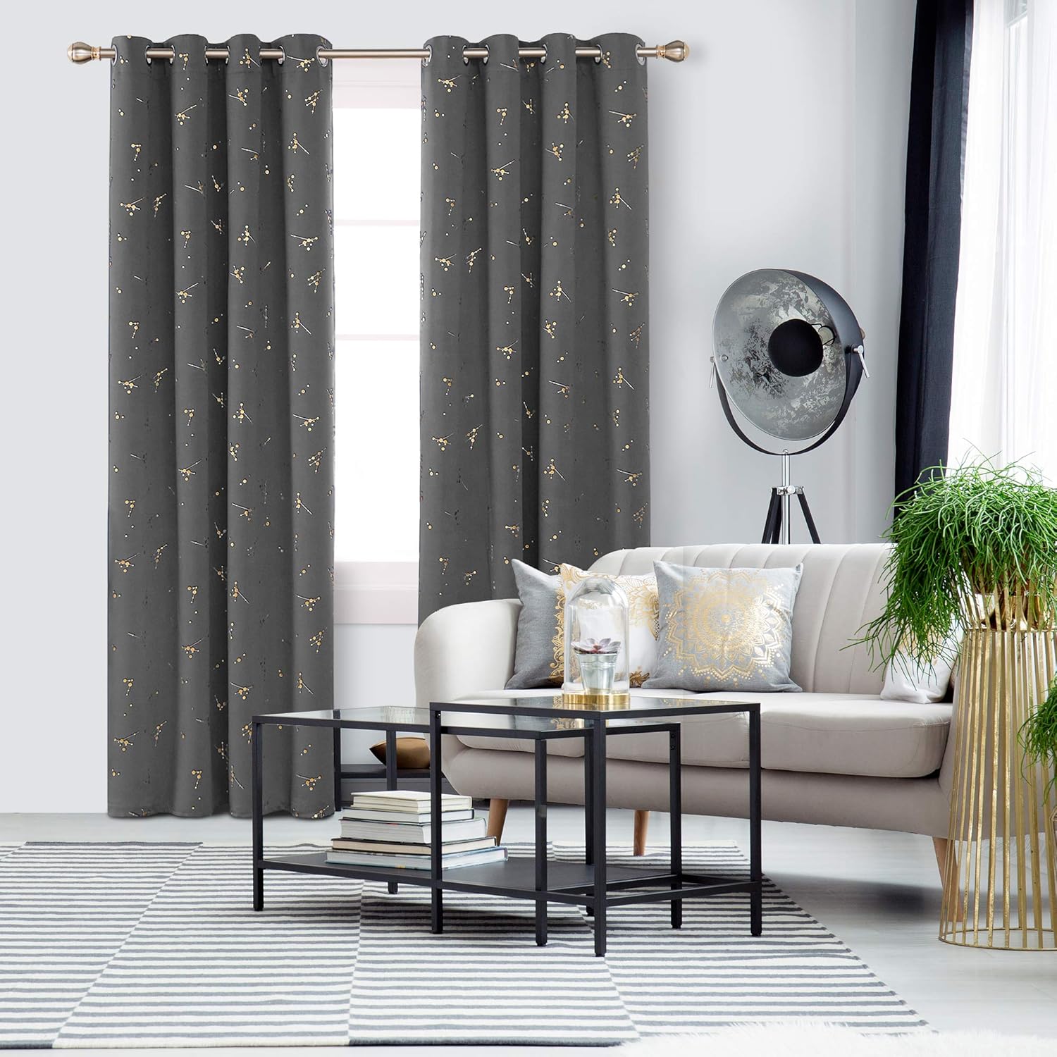 Deconovo Eyelet Blackout Curtains, Gold Constellation Printed Curtains Thermal Insulated Curtains for Bedroom, 46 X 54 Inch(Width X Length), Light Grey, 2 Panels