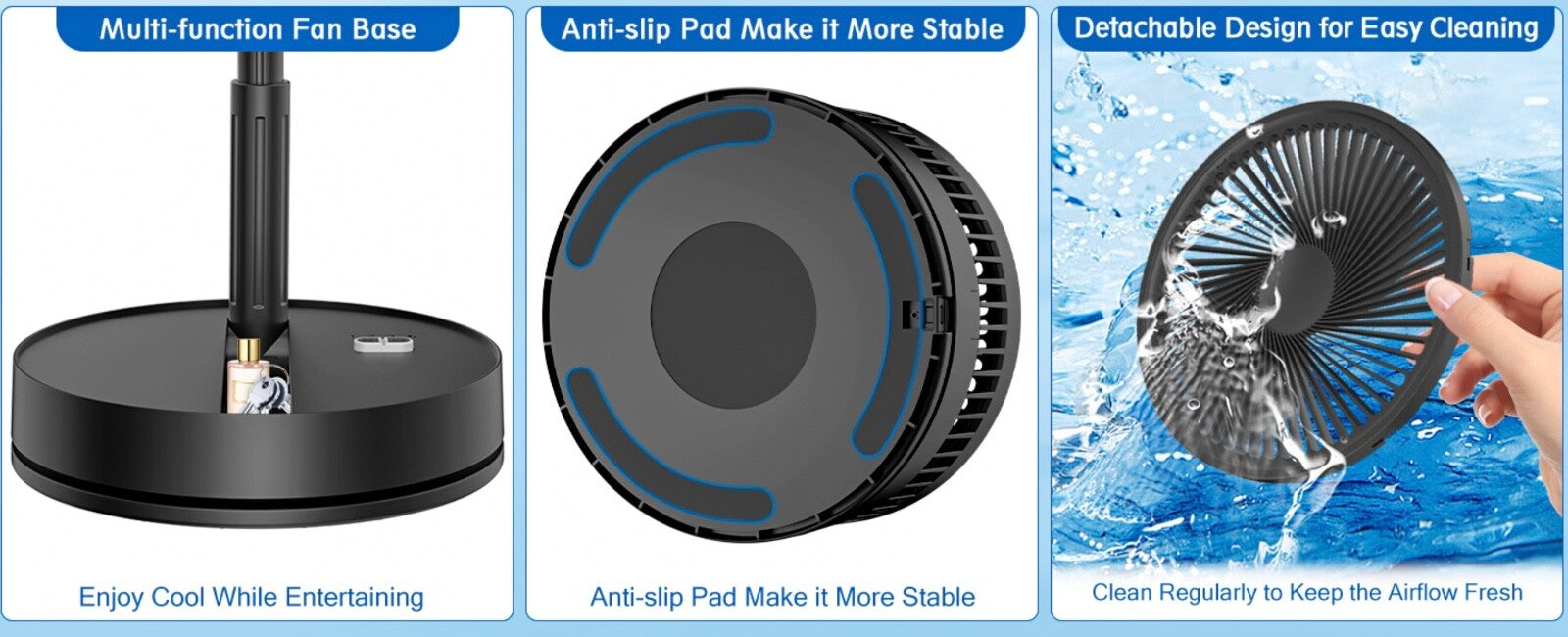 • Special Features: Adjustable Height, Lightweight, Adjustable Tilt, Oscillating, Foldable