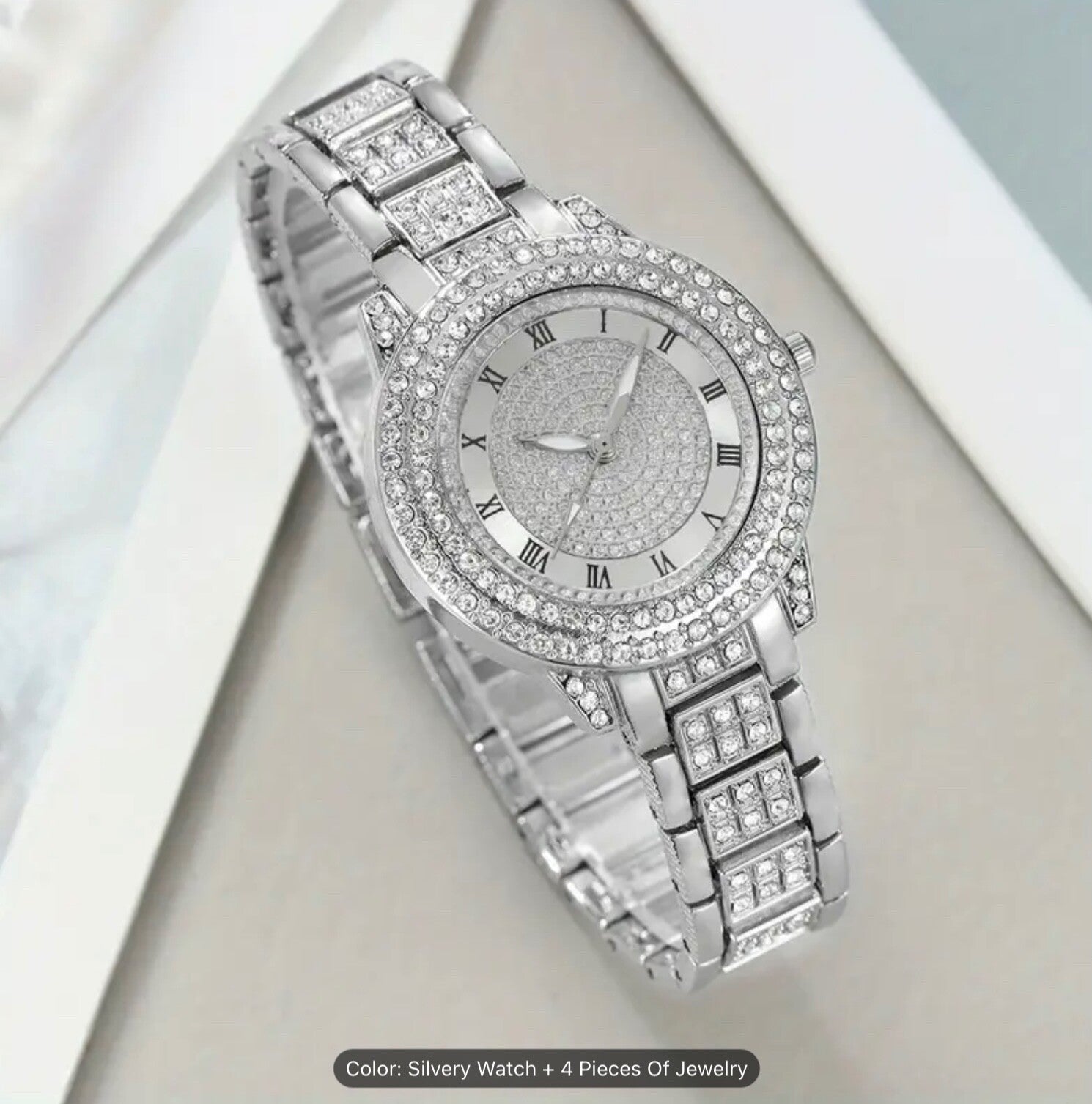 Elevate your daily and festive style with this Elegant Quartz Watch & 4-Piece Jewelry Set —designed to shine at Thanksgiving dinners, birthdays, daily office wear, or holiday parties.