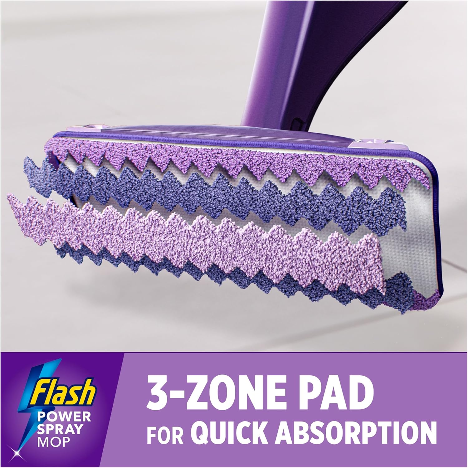 The Flash Power Spray Mop is a comprehensive spray system for all your floors. It offers 2x faster floor cleaning than a mop and bucket. The kit includes 1 washable pad and 17 disposable pads. Perfect for quick and efficient cleaning.