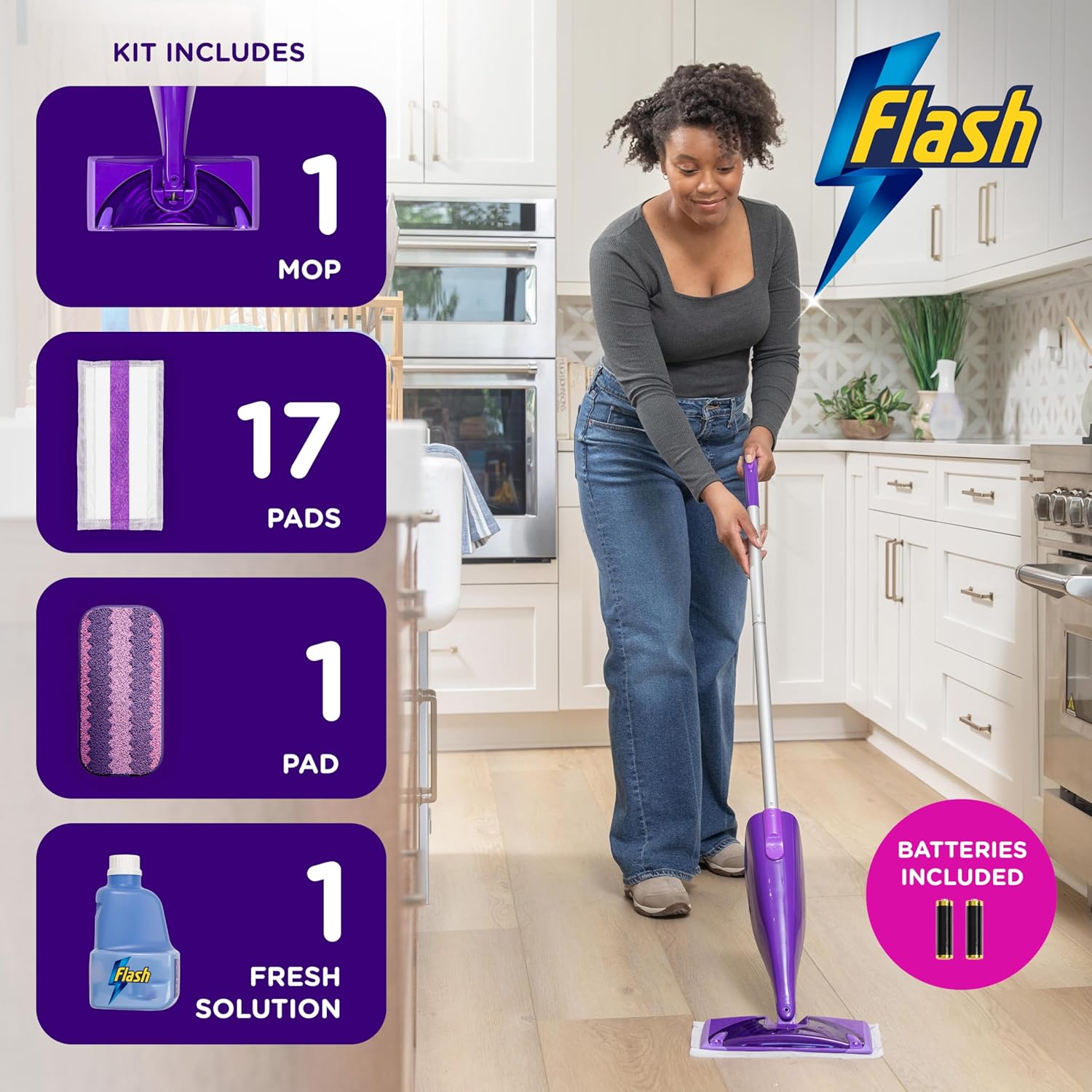 Flash Power Spray Mop Floor Cleaner Starter Kit (1 Washable + 17 Disposable Pads), All-In-One System for Your Floors