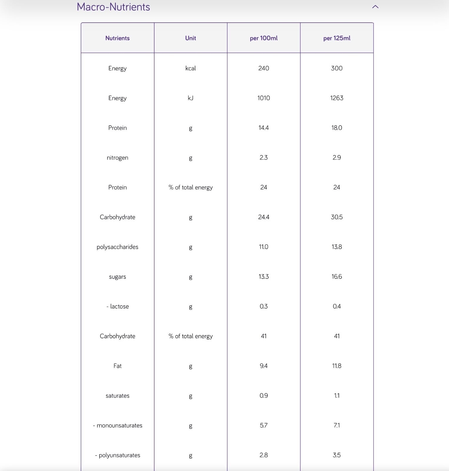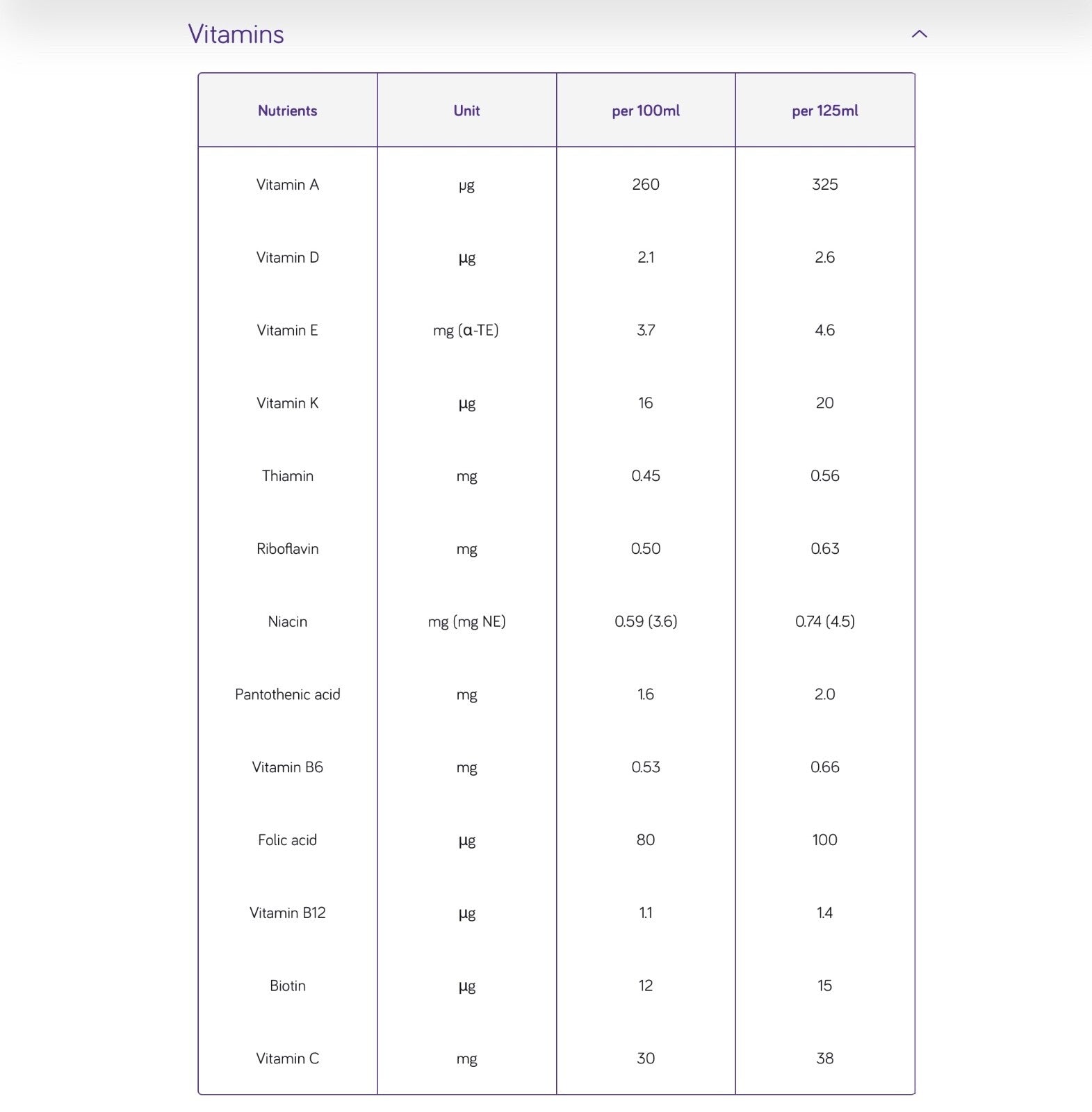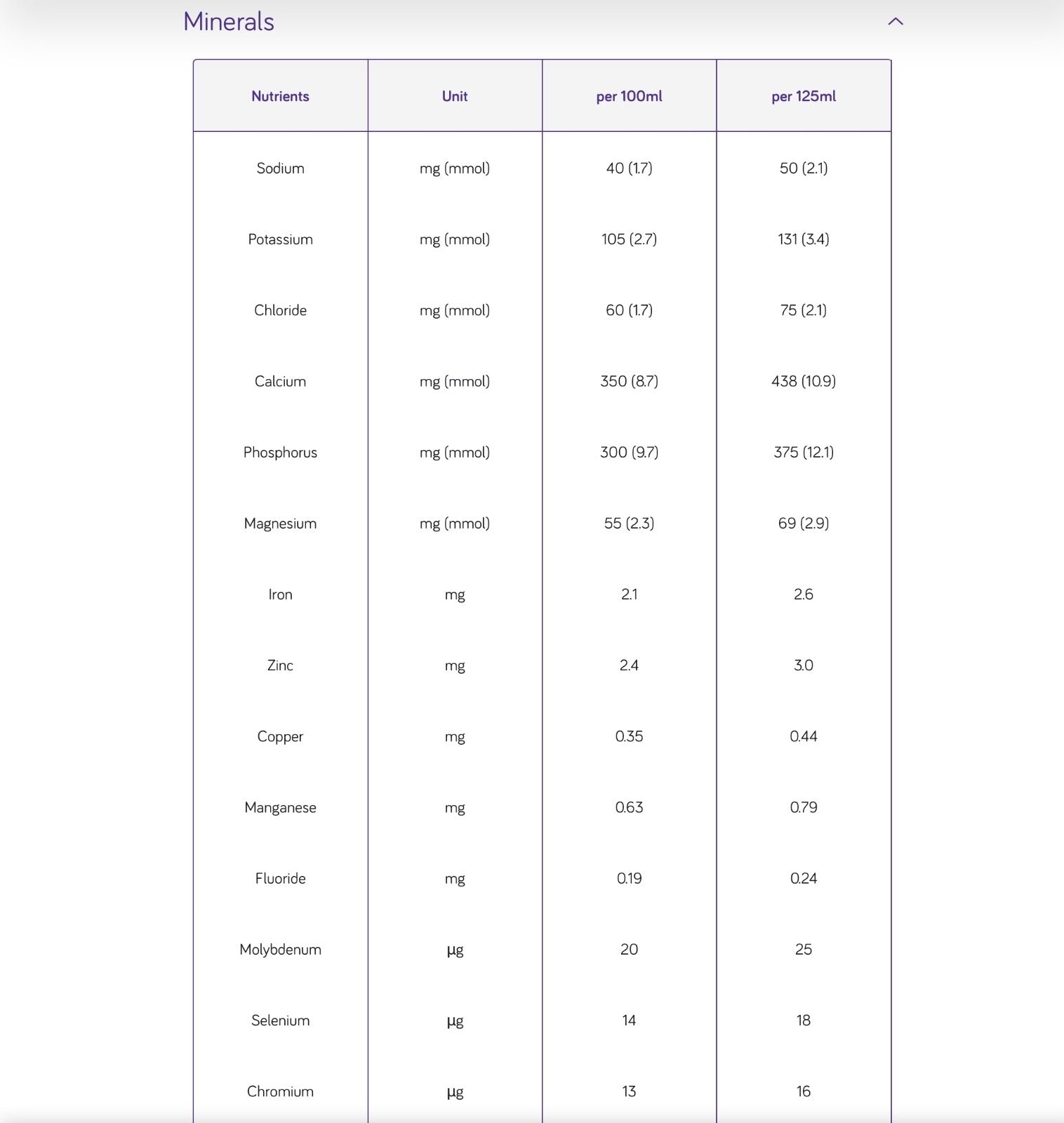- Water, glucose syrup, cow's MILK proteins, vegetable oils (rapeseed oil, sunflower oil), potassium lactate, emulsifier (SOY lecithin), magnesium hydrogen phosphate, flavouring, choline chloride, potassium citrate, sodium citrate, sodium L-ascorbate, sodium chloride, potassium chloride, ferrous lactate, nicotinamide, zinc sulfate, color (curcumin), DL- α -tocopheryl acetate, retinyl acetate, copper gluconate, sodium selenite, manganese sulfate, calcium D-pantothenate, chromium chloride, D-biotin, cholecalciferol, thiamin hydrochloride, pteroylmonoglutamic acid, pyridoxine.