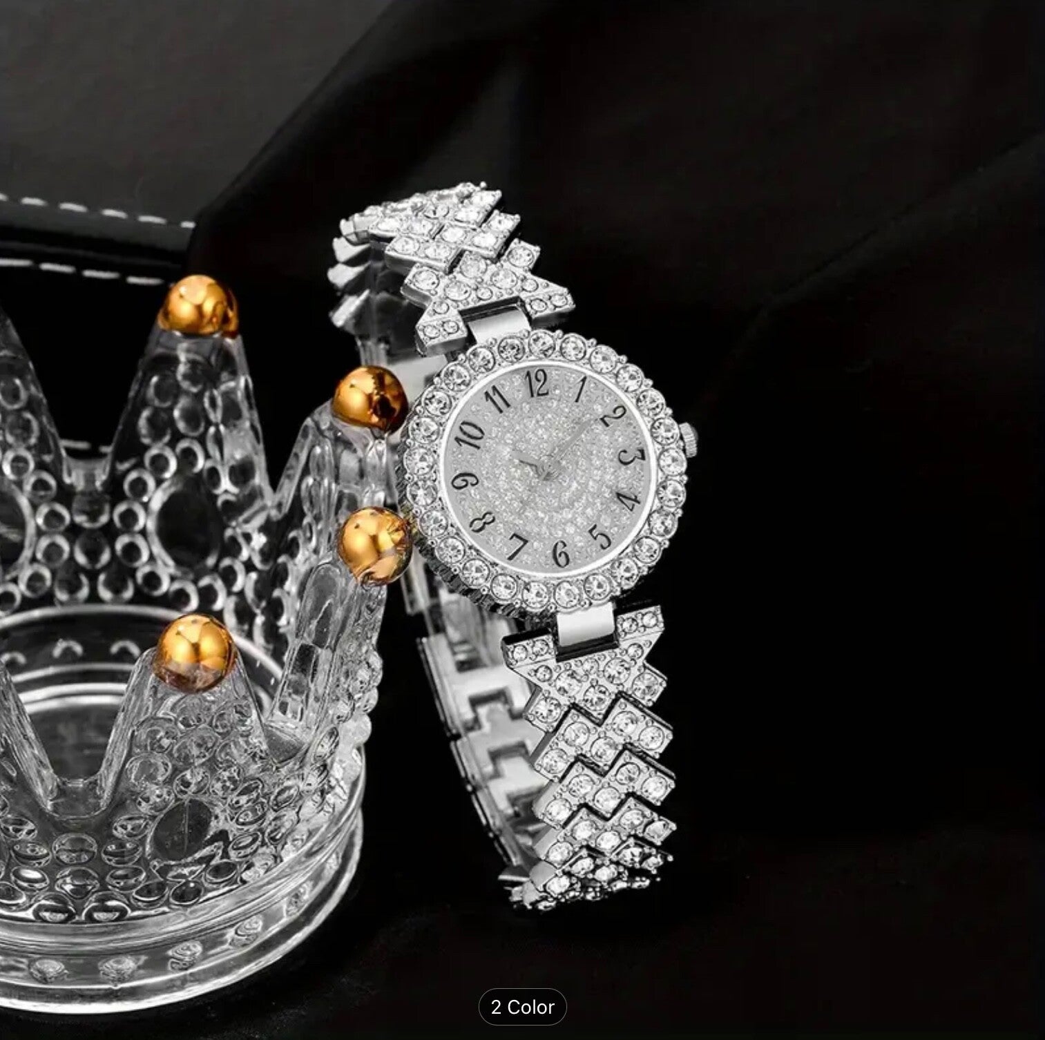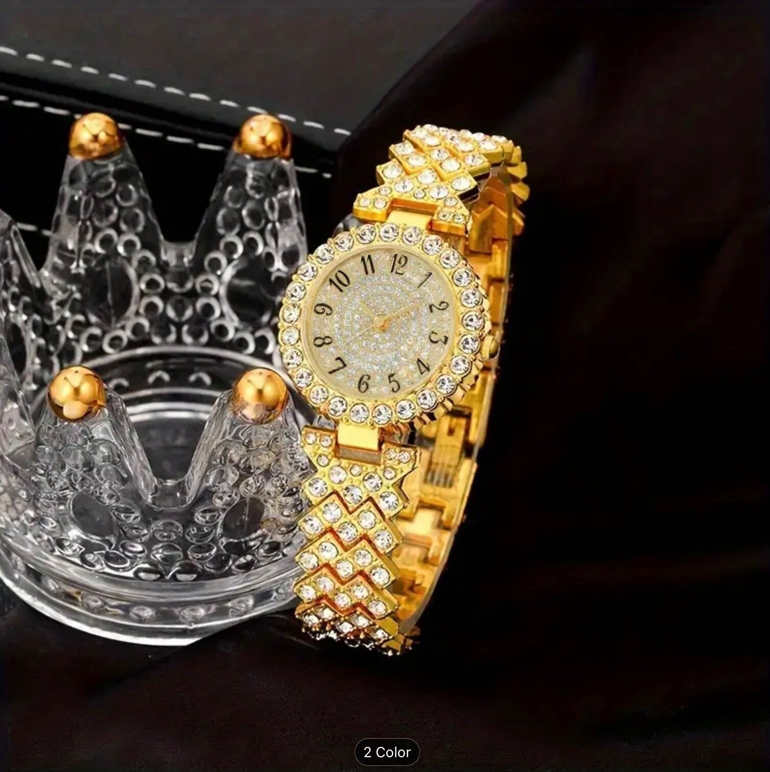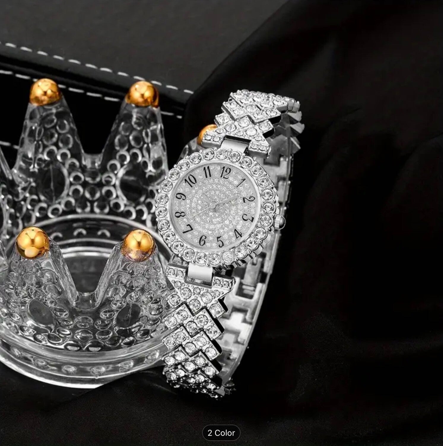 • 3 Fashionable Jewelry Pieces : Elegant alloy bracelets complementing the watch with glamour and sophistication.