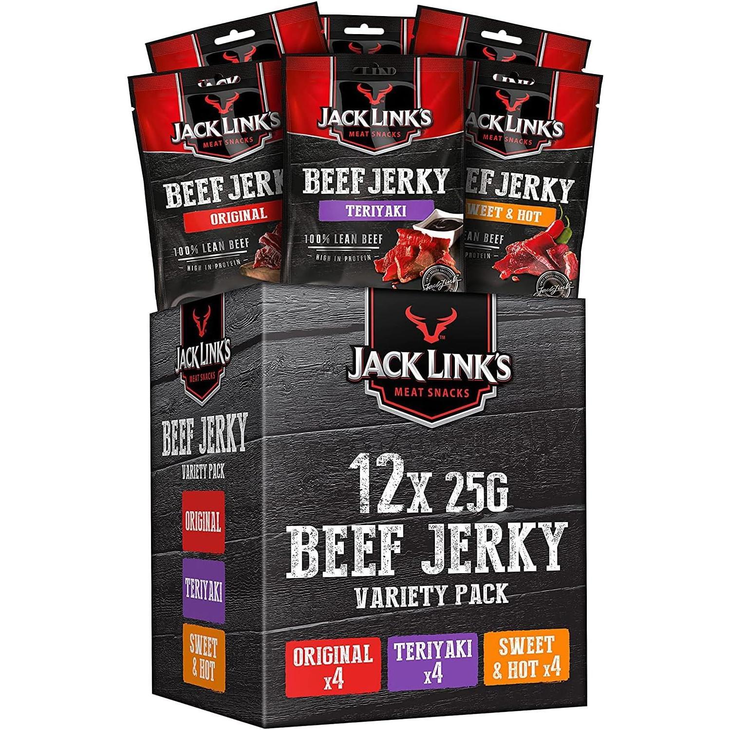 Jack Link'S Beef Jerky, Original Flavour High Protein Meat Snack, Multipack Box of 12 X 25G Packs Link Snacks Inc