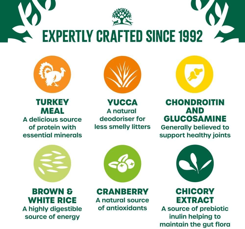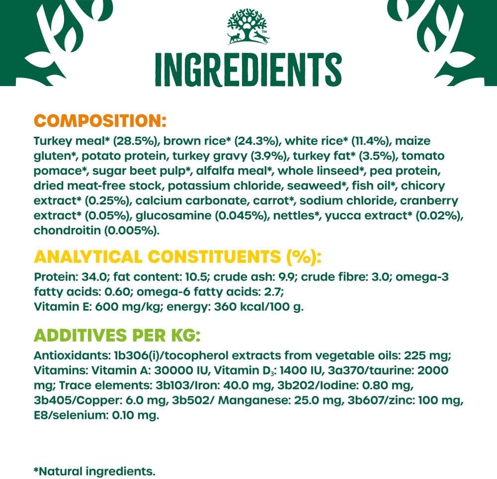 - Protein Source: Turkey, with brown and white rice for highly digestible carbohydrates.