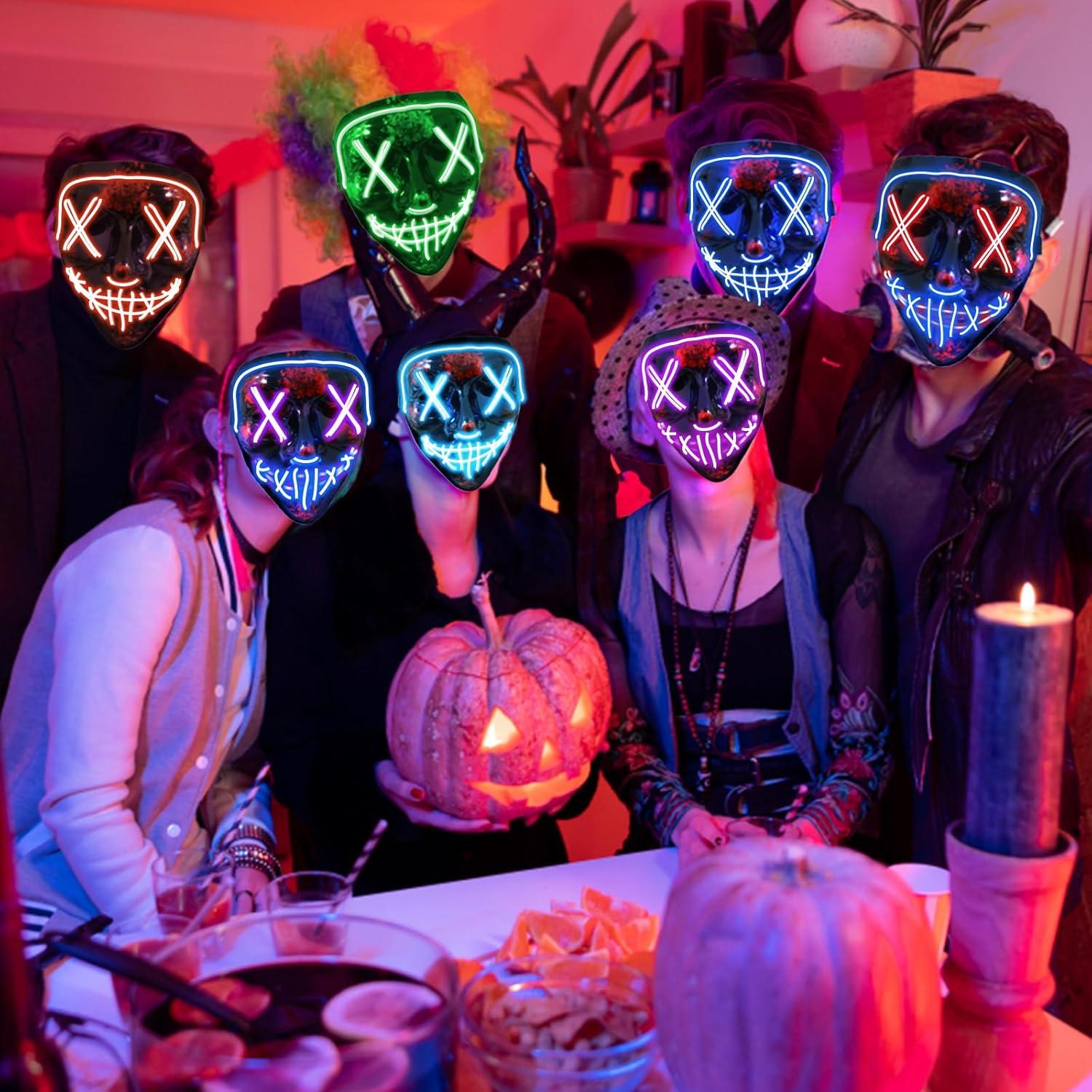 Jsdoin Halloween Masks, Scary LED Purge Mask, Light up Mask Cosplay, LED Rave Face Mask Costume 3 Lighting Modes, Halloween Face Masks for Men Women Kids