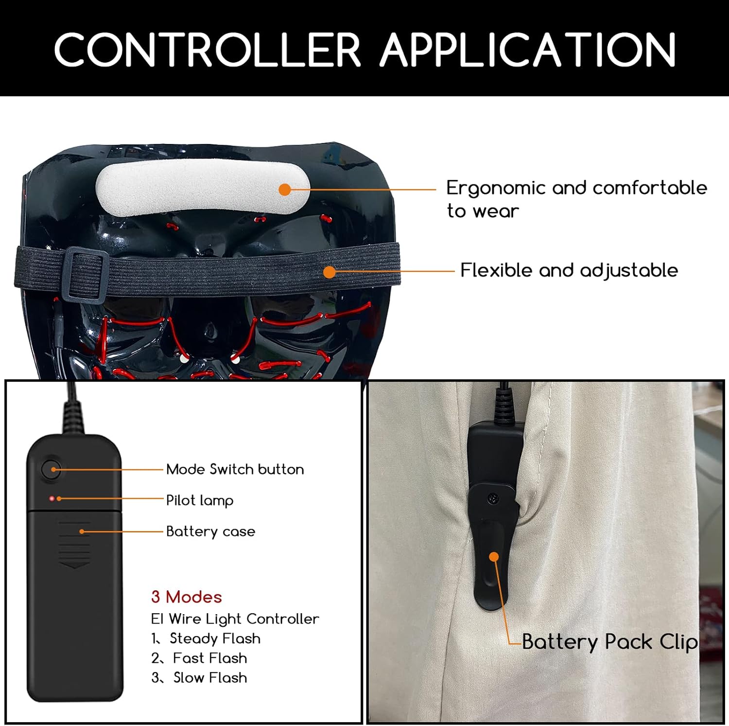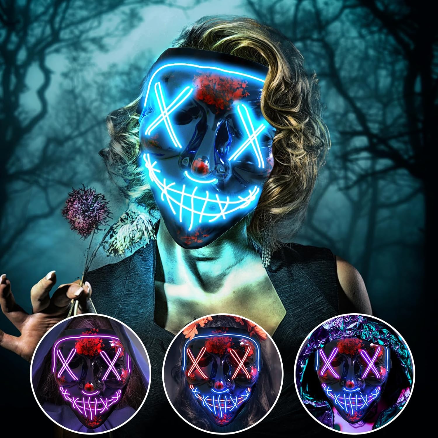 This glowing mask is built in heavy duty plastic with no odor, steady lighting effect will not flicker as well as won’t get hot when is on all night.