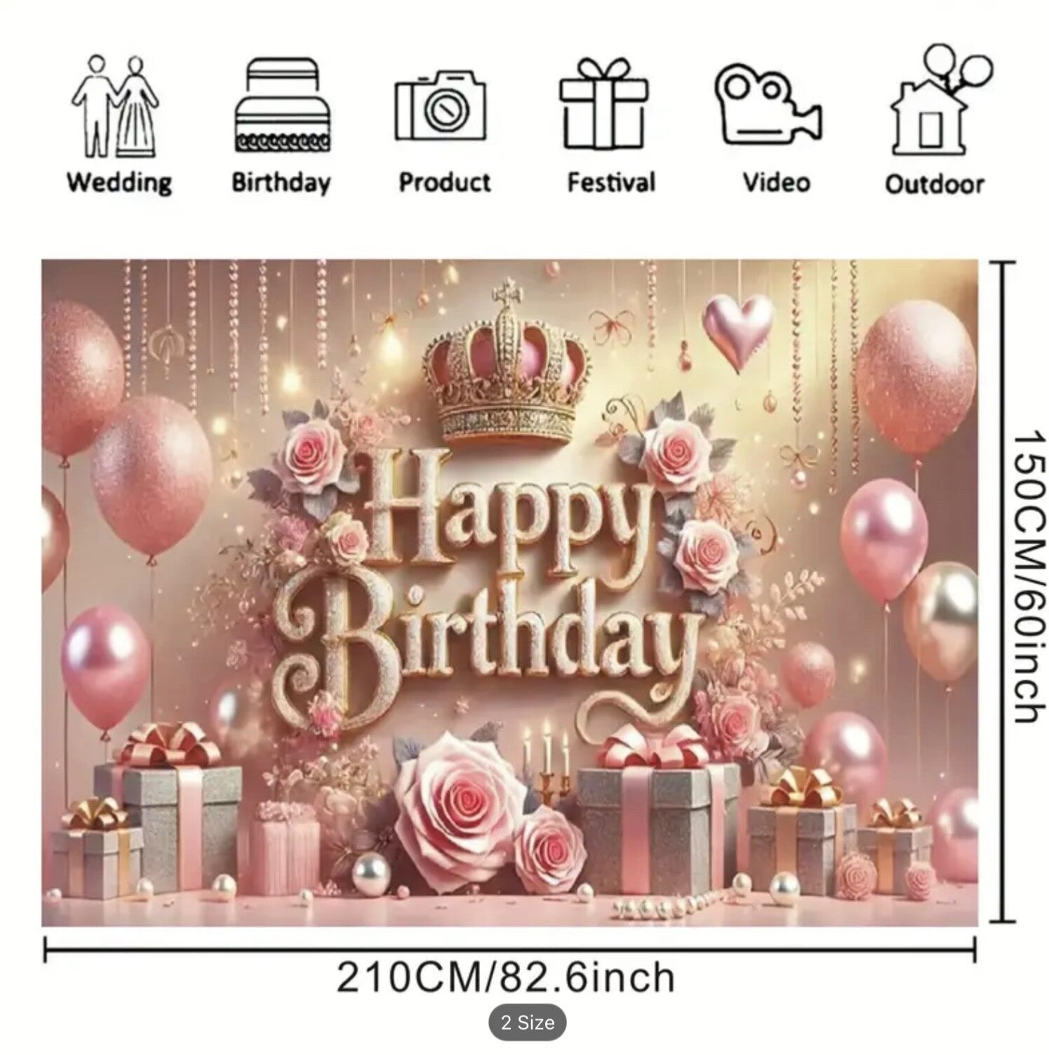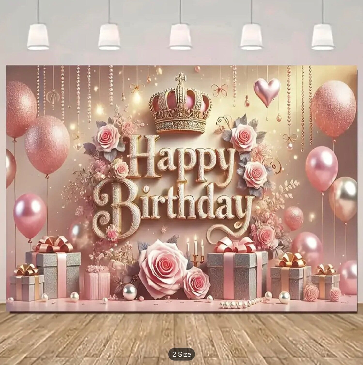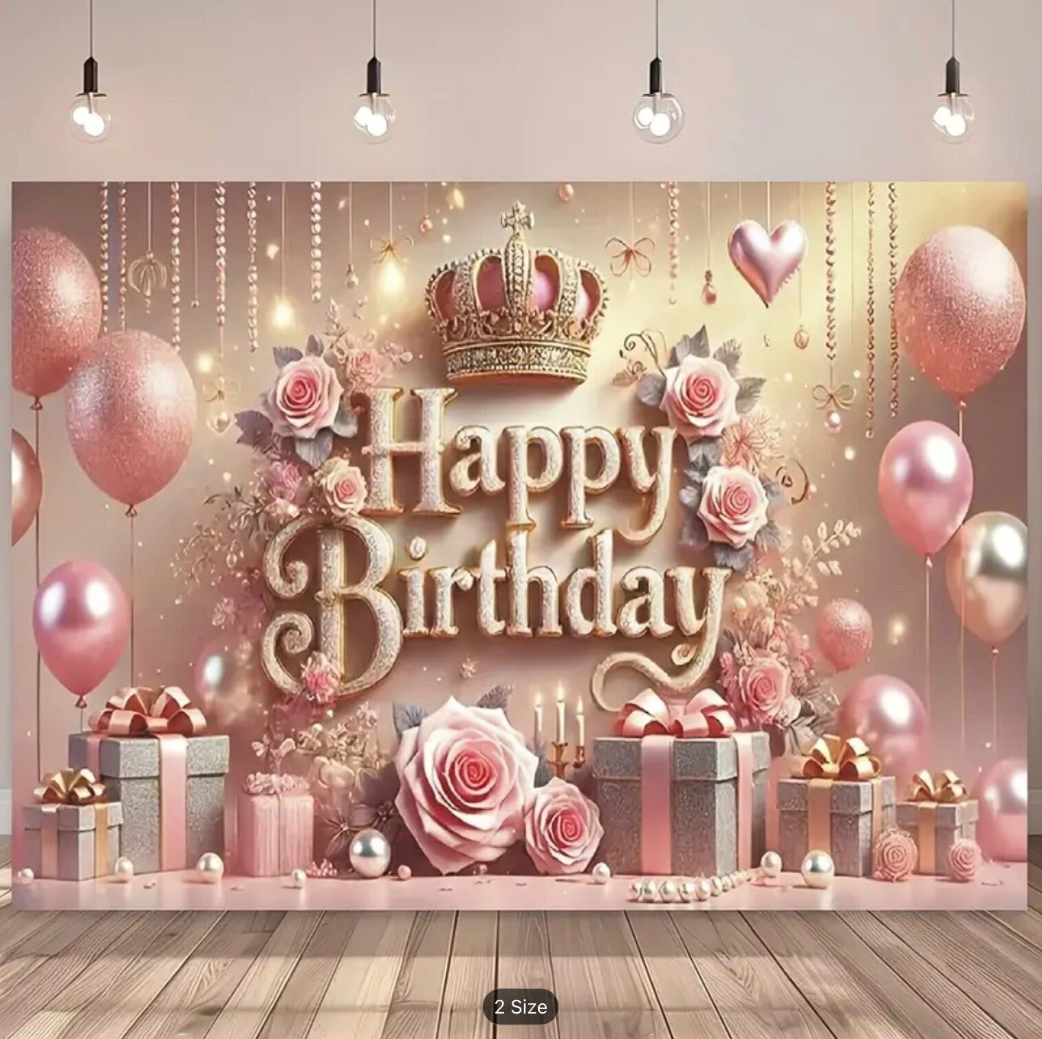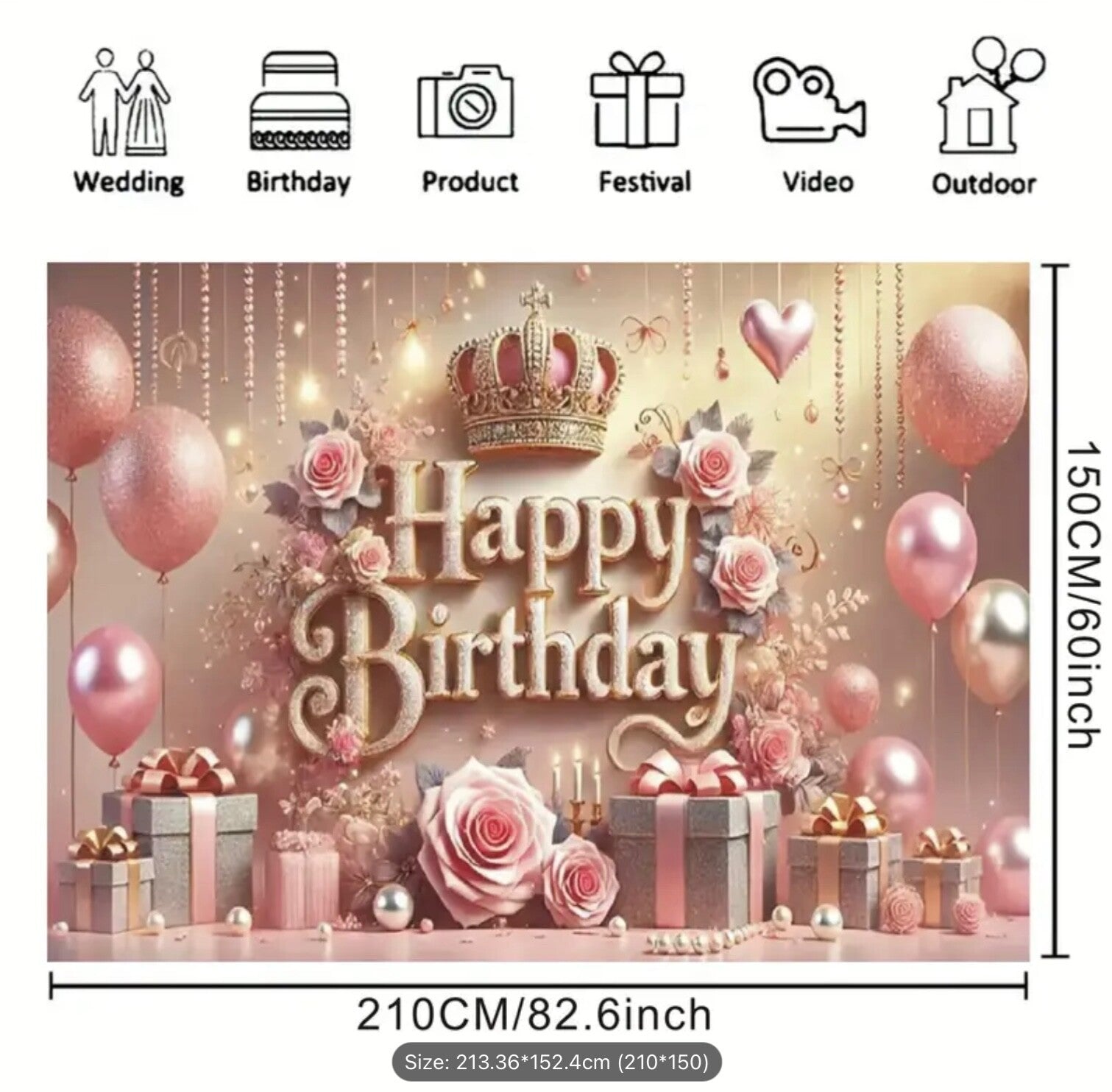 Celebrate birthdays in regal style with our Pink Floral Balloon Happy Birthday Backdrop. Designed with delicate pink hues, elegant floral patterns, and a majestic crown atop a gift box, this backdrop sets the perfect scene for memorable photographs and joyous celebrations.