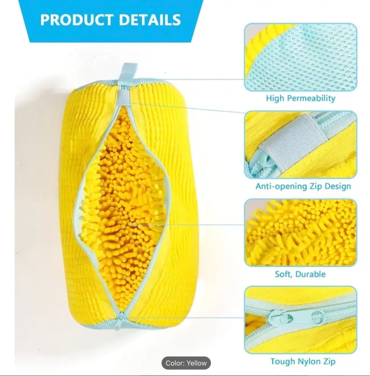 Upgrade your laundry routine with this, the large cylinder-style shoe wash bag holds both shoes at once (no need for two separate bags) , saving space and effort . Made from durable 100% polyester mesh , it resists tearing and deformation, while allowing soap and water to circulate for a deep clean without scrubbing by hand .