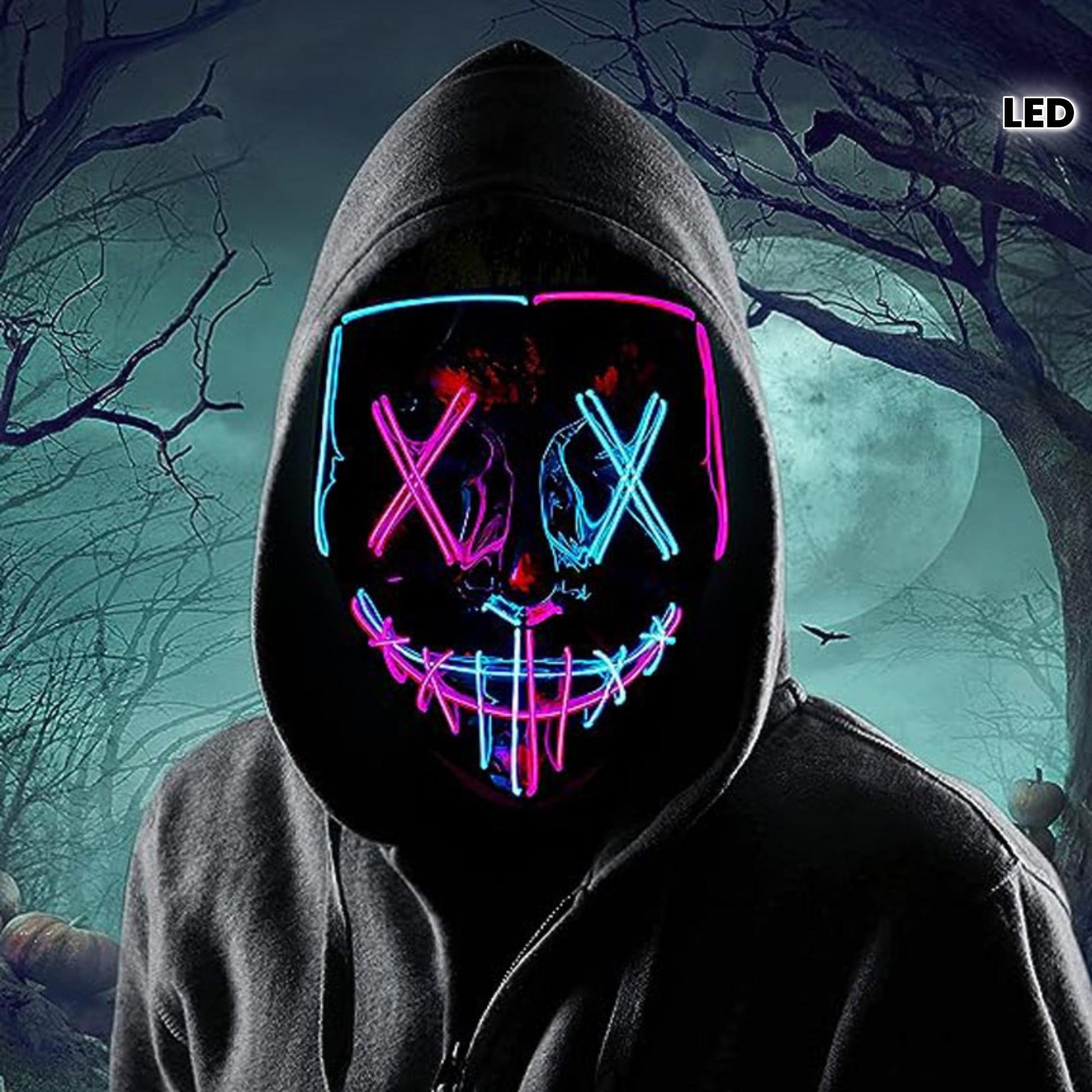 LED Halloween Mask - Motion Sensor, Neon Glow, Sound-Activated Lighting, PVC Horror Face Mask for Adults/Teens, Compatible with Halloween, Haunted Houses, Clubs, Festive Celebration, Glowing Effect, Highquality Lighting, Event At