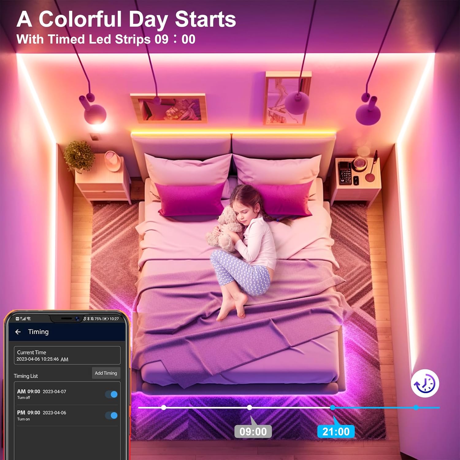 LED Strip Light 5M, RGB Music Sync Colour Changing LED Lights for Bedroom, Smart Ambient Lights with Bluetooth App & Remote Control, Flexible Design for Gaming, Ceiling, and Home Decoration unbranded