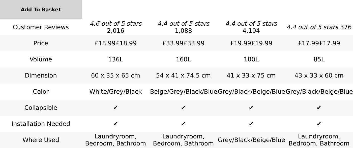 ● Super Spacious Capacity: The overall dimension of the entire foldable laundry basket is 23.6" (60cm) × 13.8" (35cm) × 25.6" (65cm), and the capacity is 136L, which can hold 3~4 loads of laundry. The capacity of each compartment is 68L, and they both can hold 1.5~2 loads respectively.