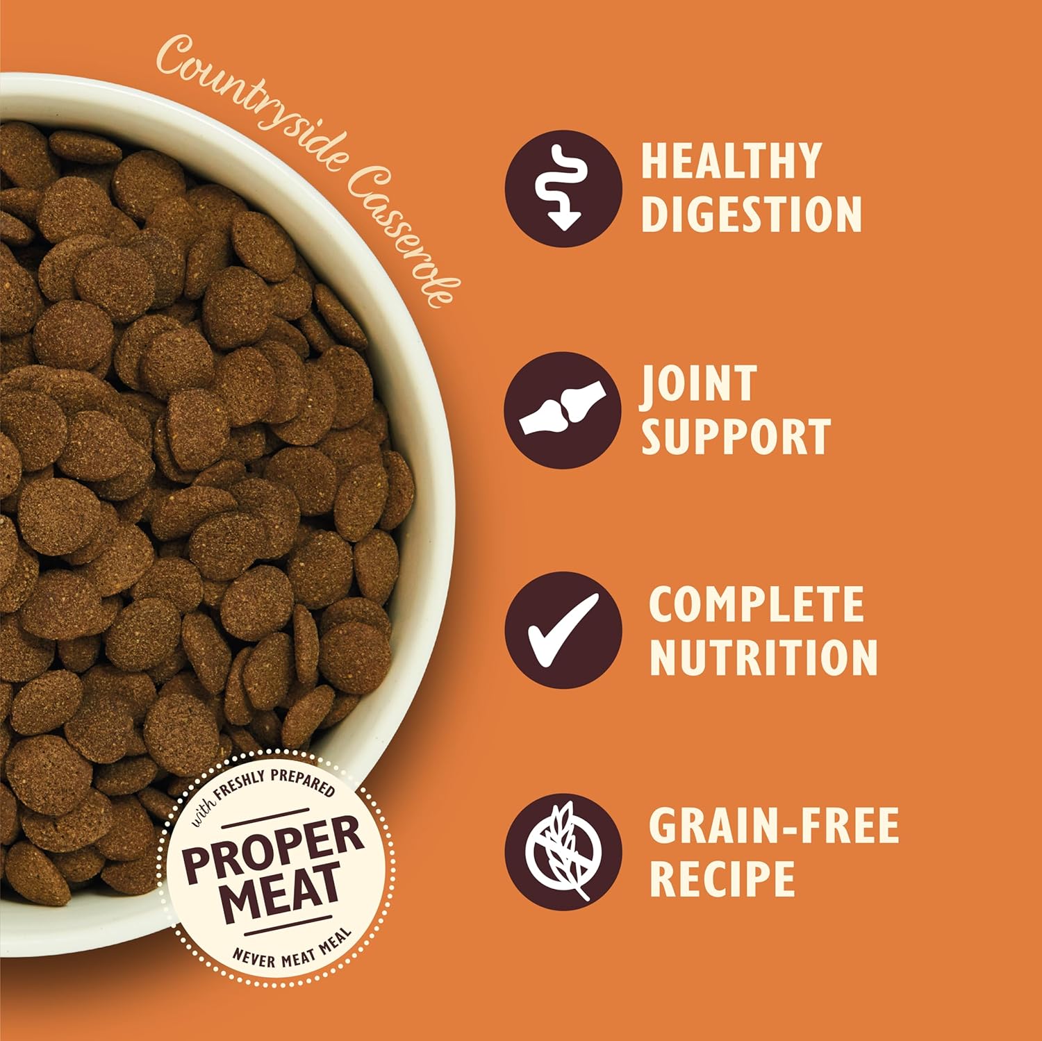 - Countryside Casserole We make this recipe using fresh chicken and freshly prepared duck, wholesome vegetables, fruits and botanical herbs. All essential vitamins your dog needs in their daily diet have also been added.