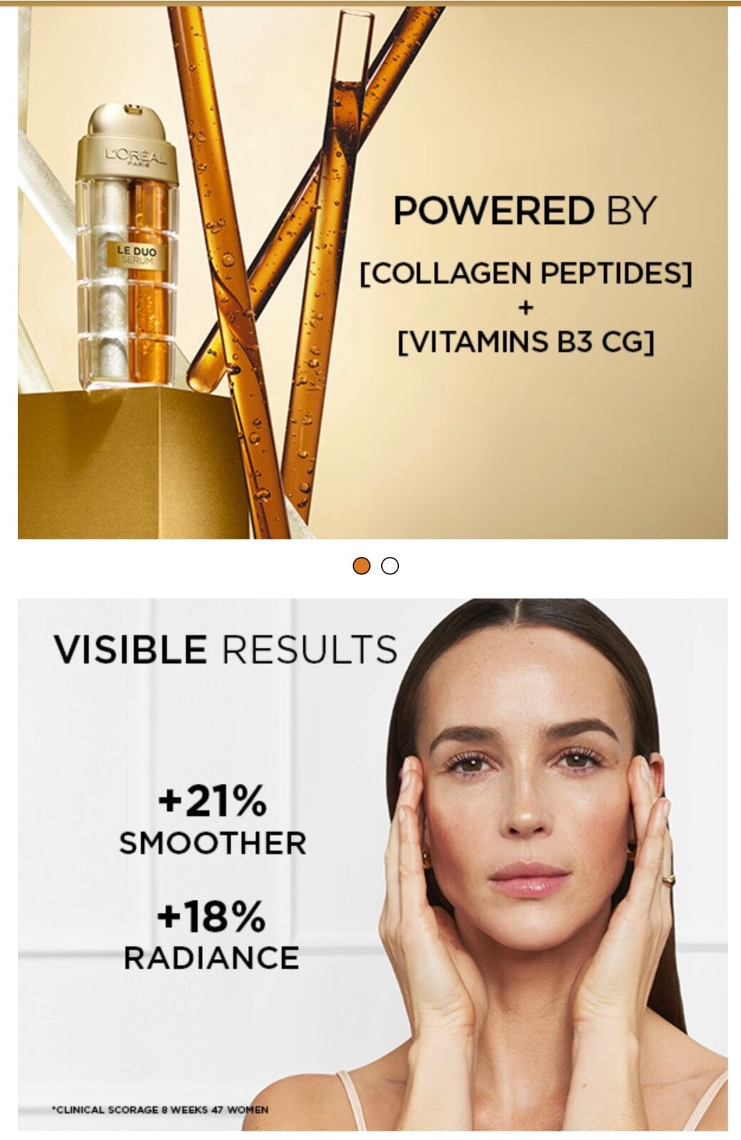 Experience the revolutionary L’Oréal Paris Age Perfect Le Duo Serum, a dual-action formula combining the power of two serums in one bottle.