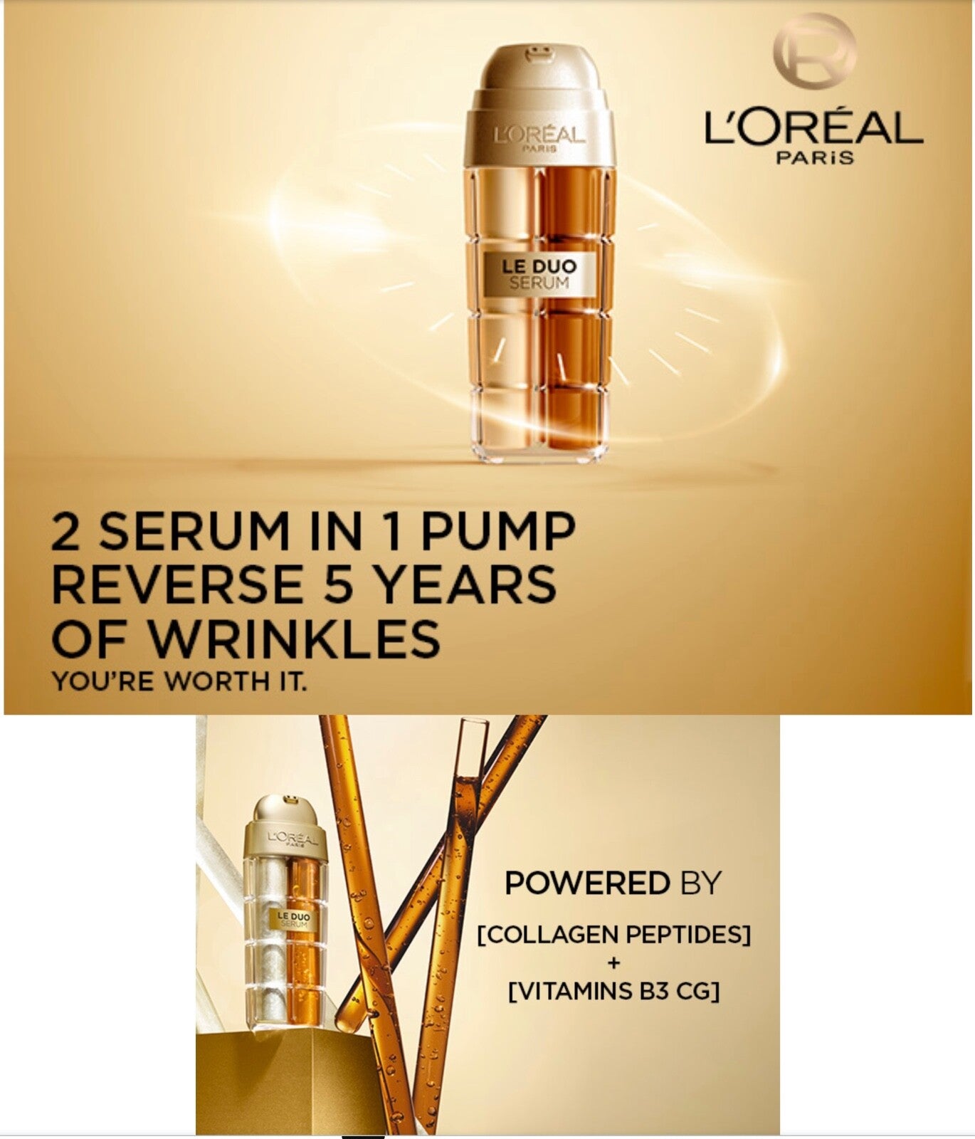 Discover the L'Oréal Paris Age Defying Serum Le Duo, a breakthrough innovation from L'Oréal labs. Clinically proven to reverse the look of up to 5 years of wrinkles**.