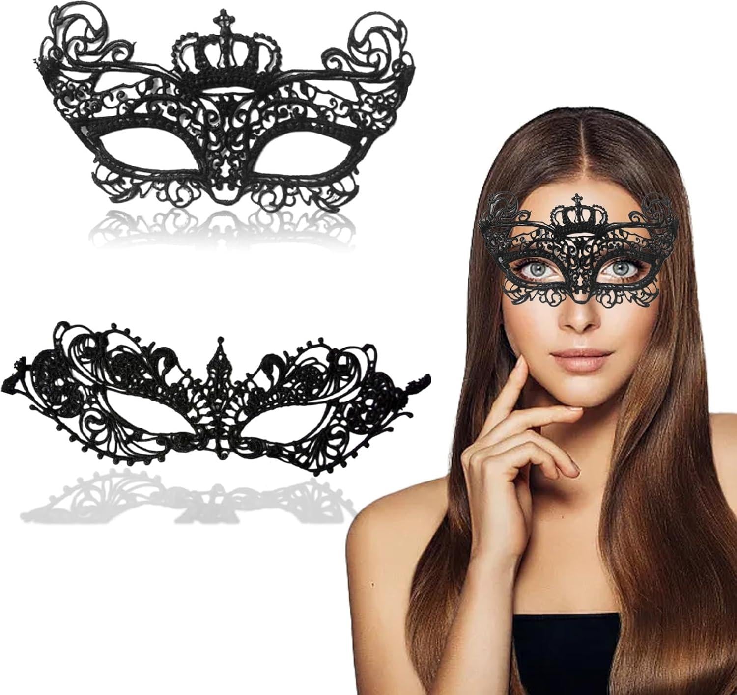 Ormromra 2PCS Lace Masquerade Masks, Black Face Mask for Women, Sexy Lace Eyemask, Half Face Venetian Lace Mask, Lady Girl Lace Eye Mask, for Elegant Prom, Halloween, Costume Party ormromra