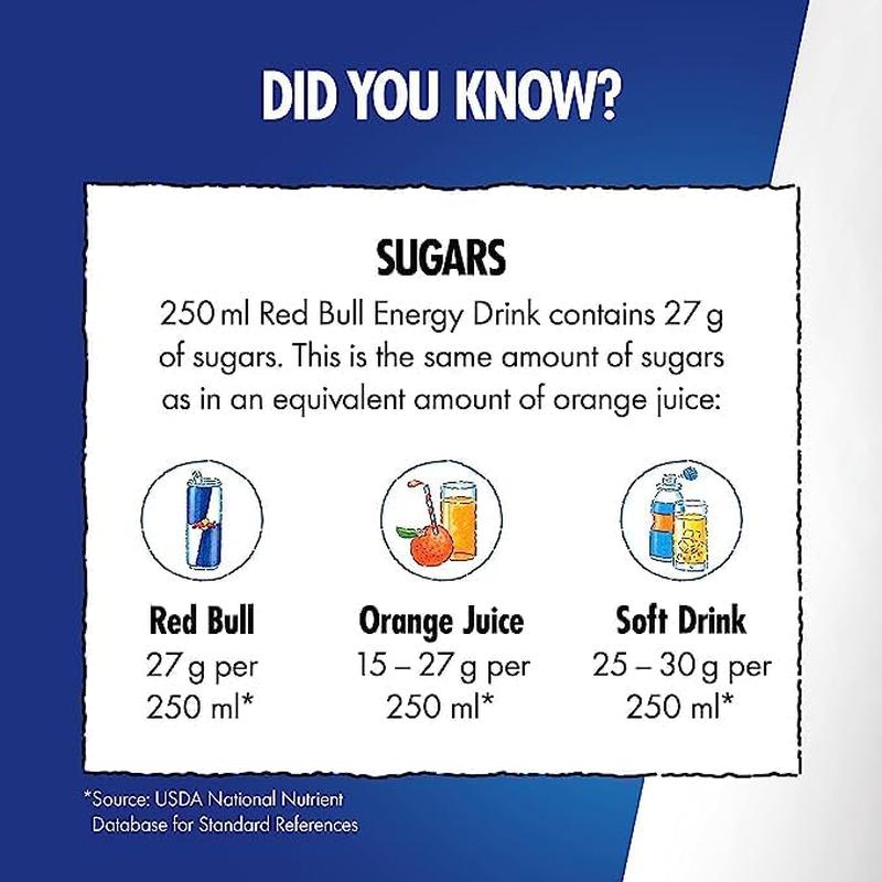 Red Bull gives you wings. Red Bull not only launched a completely new product, it created a whole new product category energy drinks. Red Bull has been giving wings to people and ideas, setting many milestones in sports and culture. Red Bull is appreciated worldwide by a variety of people such as top athletes, busy professionals, college students and travelers on long journeys. The sugar free variant red bull sugarfree provides the wings of red bull energy drinks without sugars. Red Bull was the first global energy drink brand to address the consumer need for sugar free energy drinks and launched its Red Bull sugar free variants. Caffeine has already been known for its stimulating effects on the human body by ancient civilizations who consumed it from natural sources like tea, coffee, cacao beans. Red Bull is very aware of its environmental responsibility and is constantly striving for improvement. Red Bull has made a conscious decision to use 100% recyclable aluminium cans.