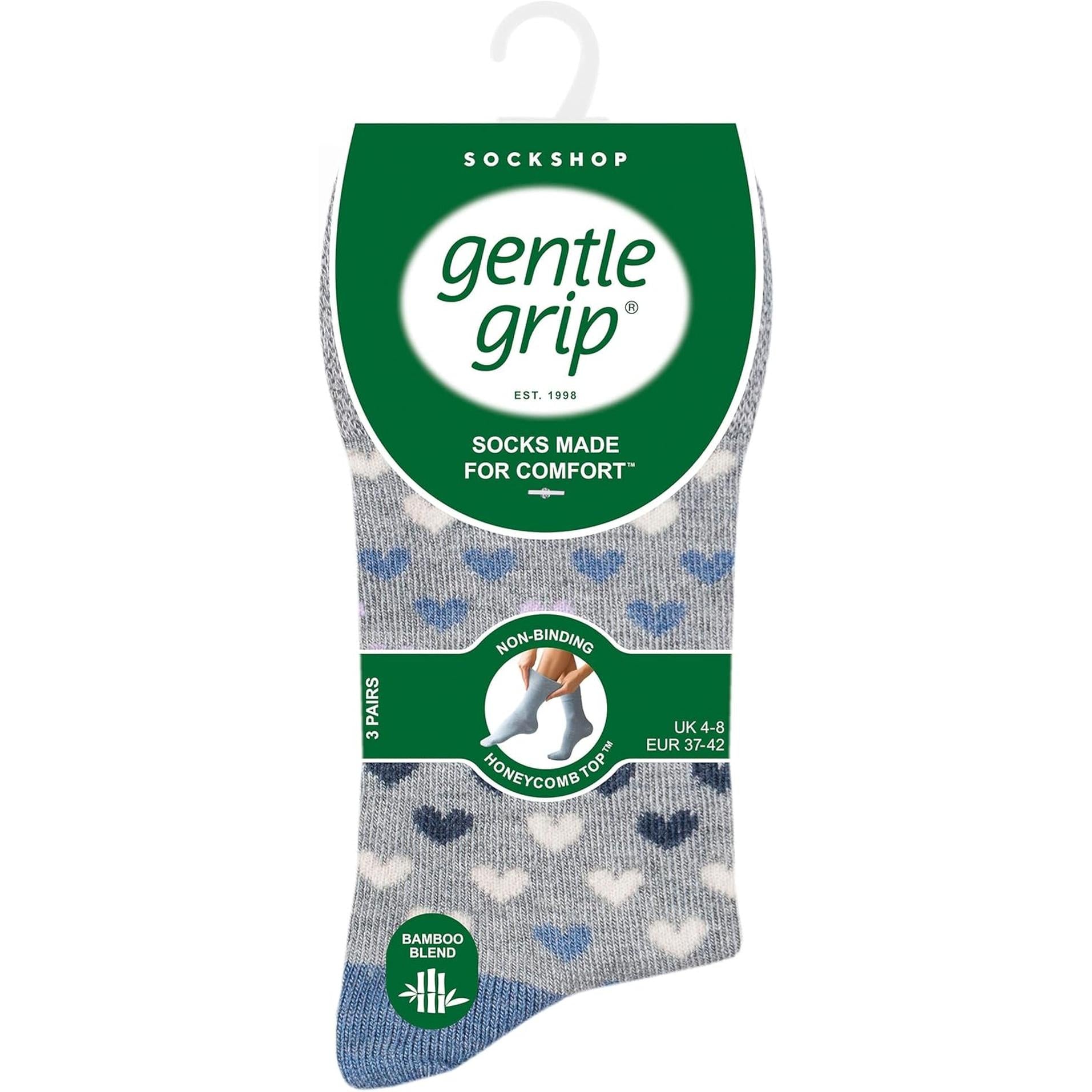 SOCKSHOP Gentle Grip Ladies Bamboo Socks Pack of 3 Denim 4-8 Sock Snob