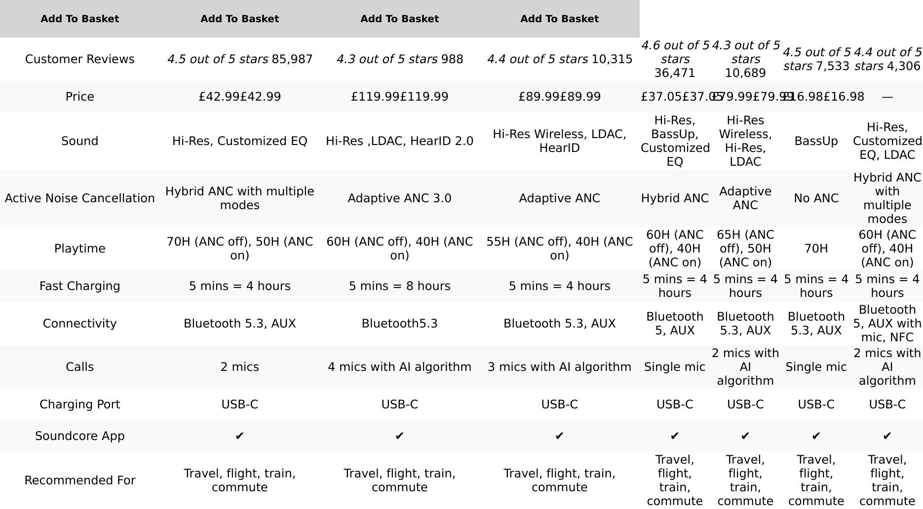 ● soundcore App Select a noise cancellation mode, choose from 22 EQ presets or customize your own, and tailor your own white noise soundscape for when you need to rest.