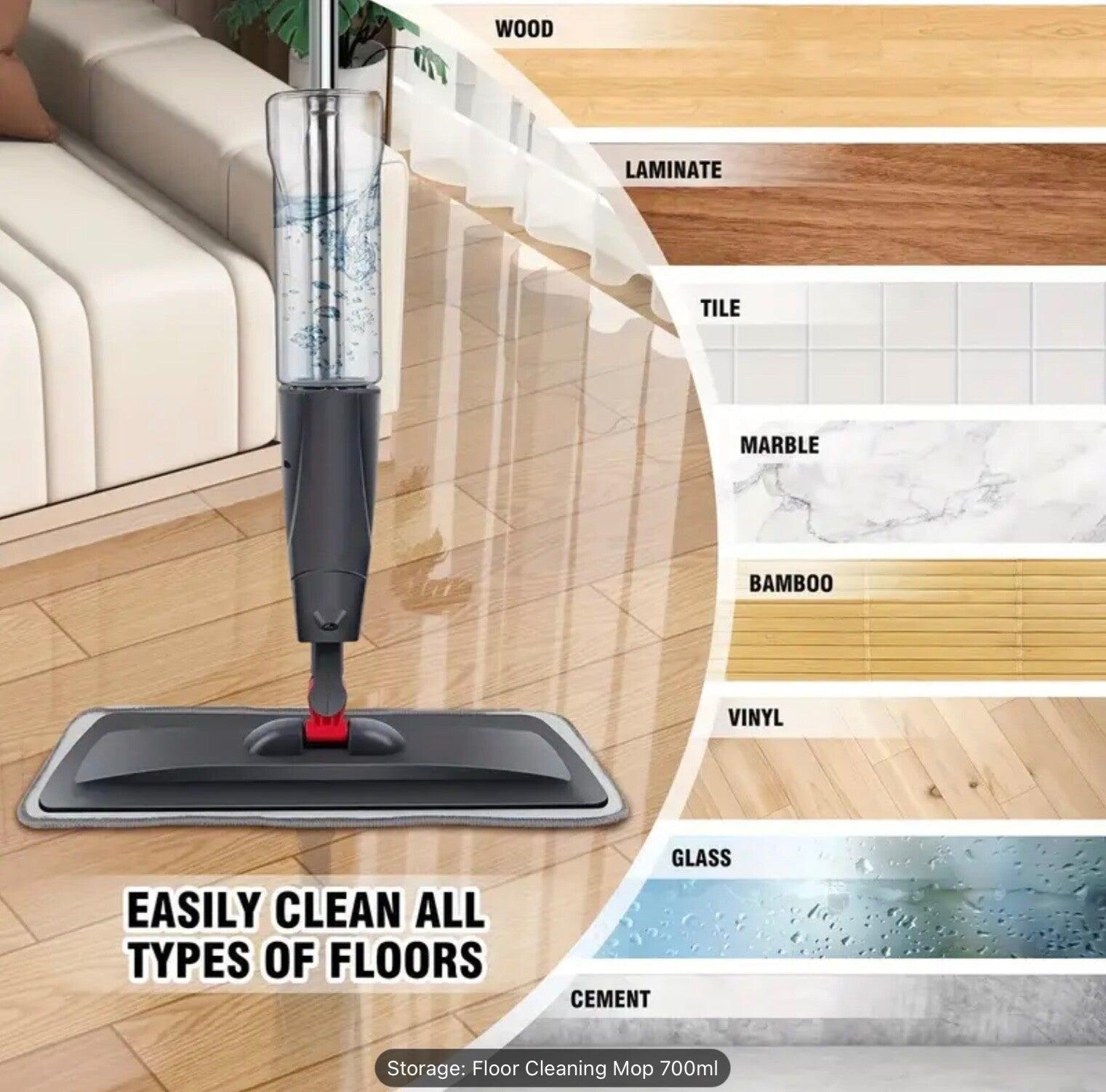 Spray Mop Microfibre Easy Floor Cleaning 700ML Refillable Washable Pads 360° Swivel Head – Dry & Wet Use – Ideal for Laminate, Wood & Tile Floors – Includes 3 Washable Microfiber Pads – Lightweight & Durable Design
