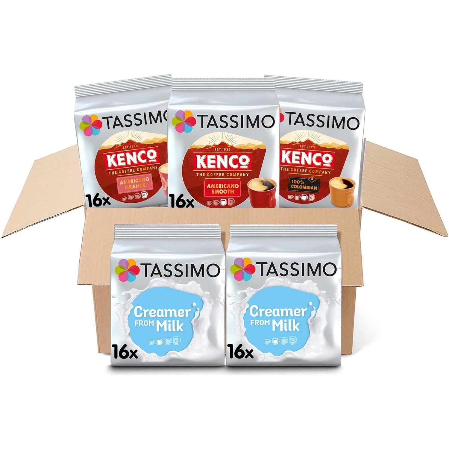 - KENCO BRINGS EXPERTISE AND PASSION to your coffee; That's why they've partnered with Tassimo to create coffee pods; From Espresso to Flat White, there will always be a Kenco drink you'll enjoy