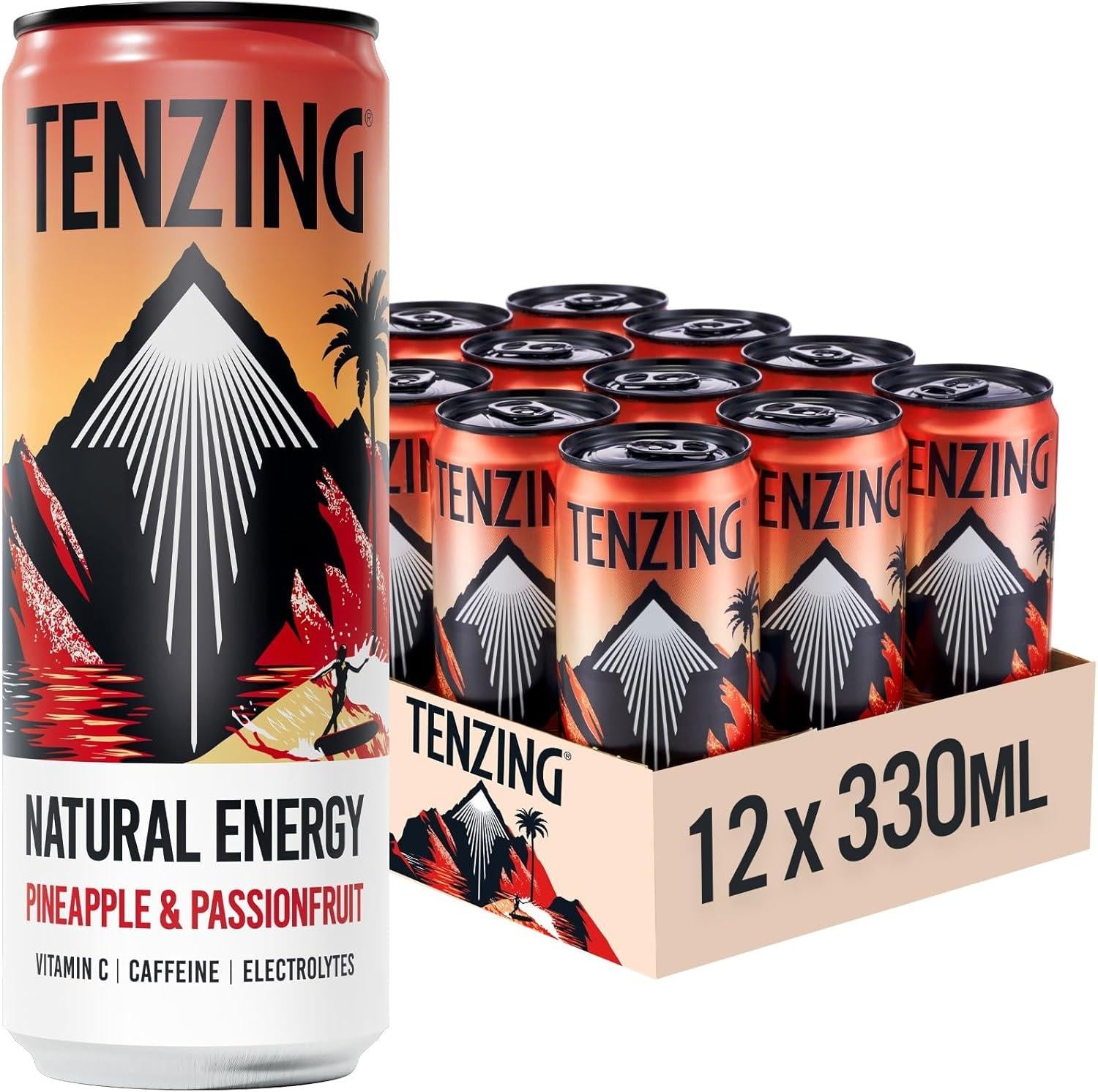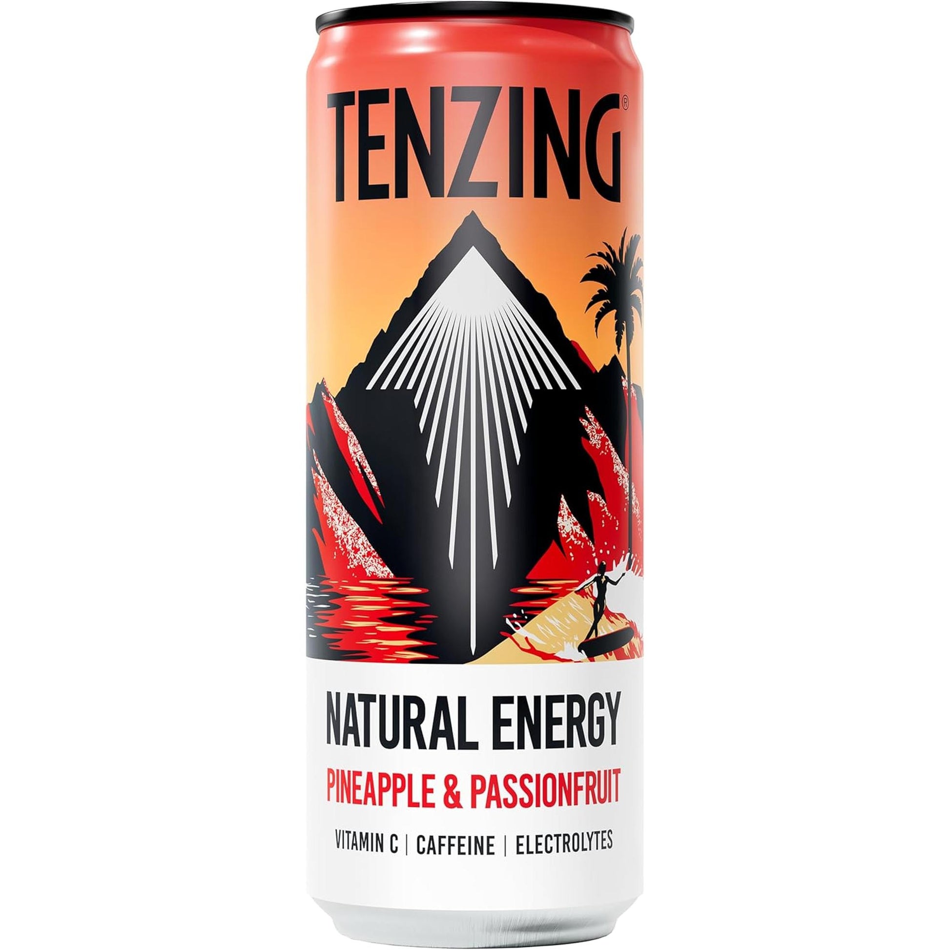 TENZING Natural Energy Drink, Plant Based, Vegan, & Gluten Free Drink, Pineapple & Passionfruit, 330Ml (Pack of 12) - Packaging May Vary Tenzing