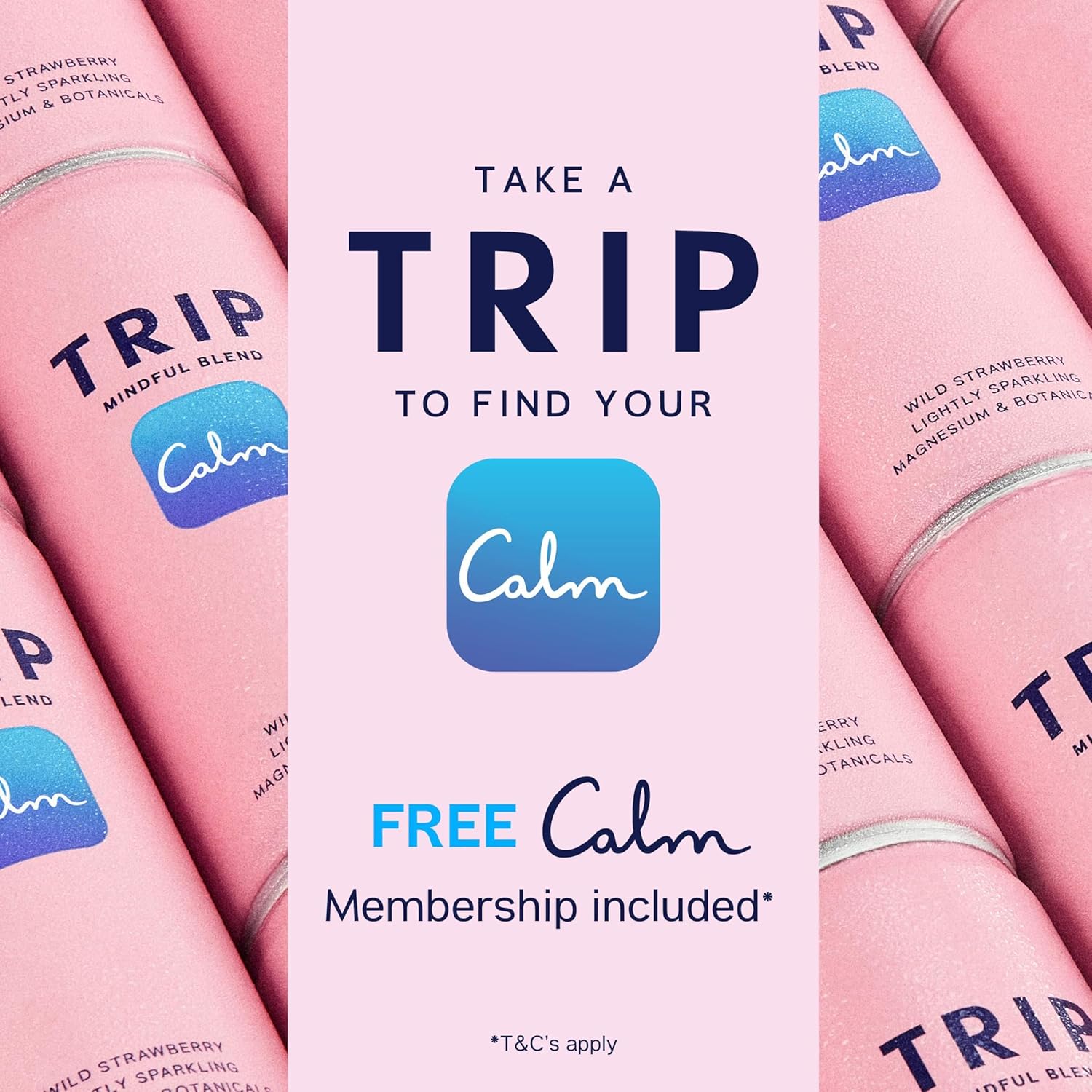 TRIP Mindful Blends - Wild Strawberry Sparkling Drink with 1440MG Magnesium Citrate + Lion’S Mane + Chamomile + Lemon Balm. Low Calorie, No Added Sugar and Vegan (Pack of 12 X 250Ml)